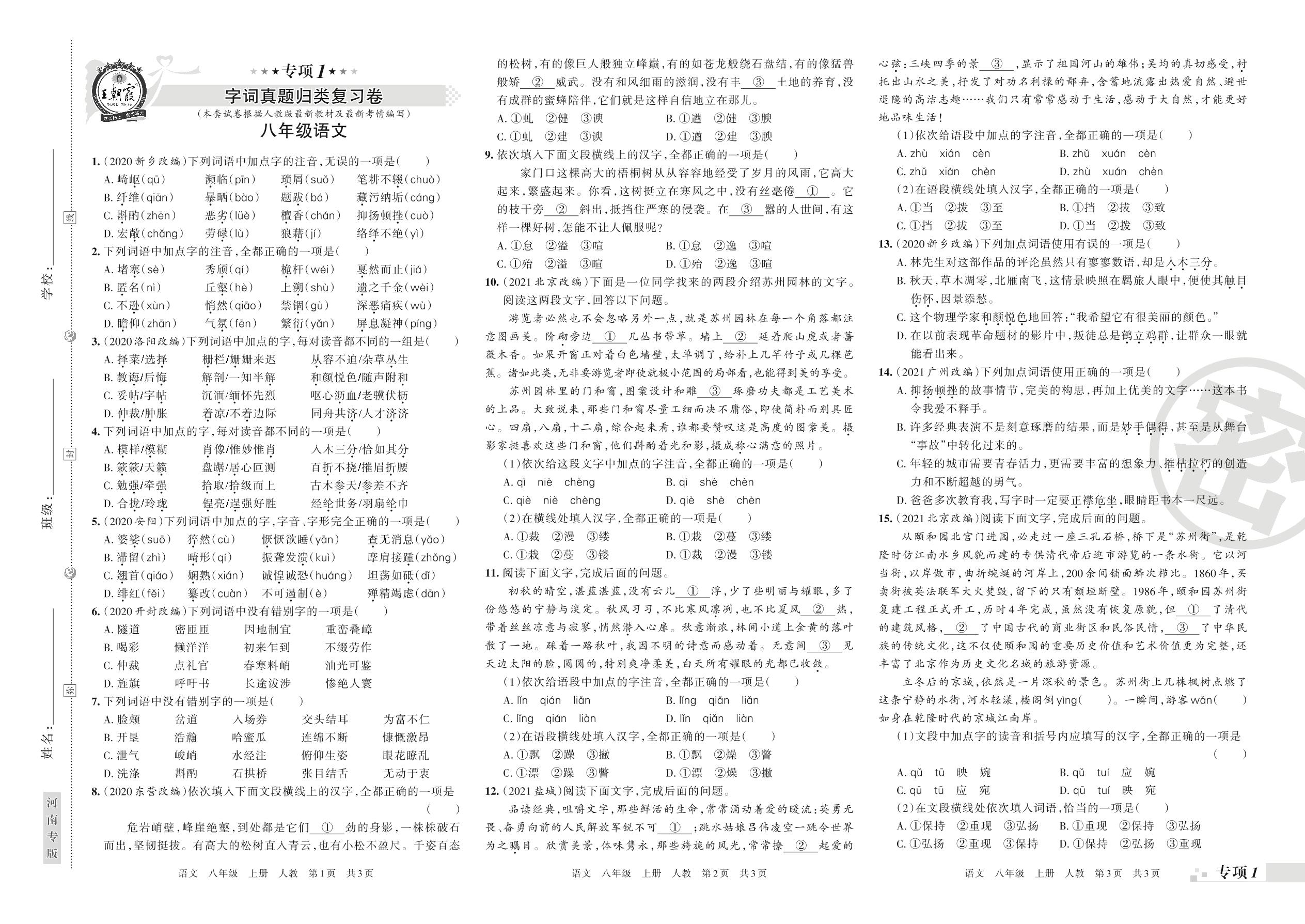 王朝霞期末专项卷——字词真题归类复习卷八年级上册语文(人教版)_R211203141243387【1】
