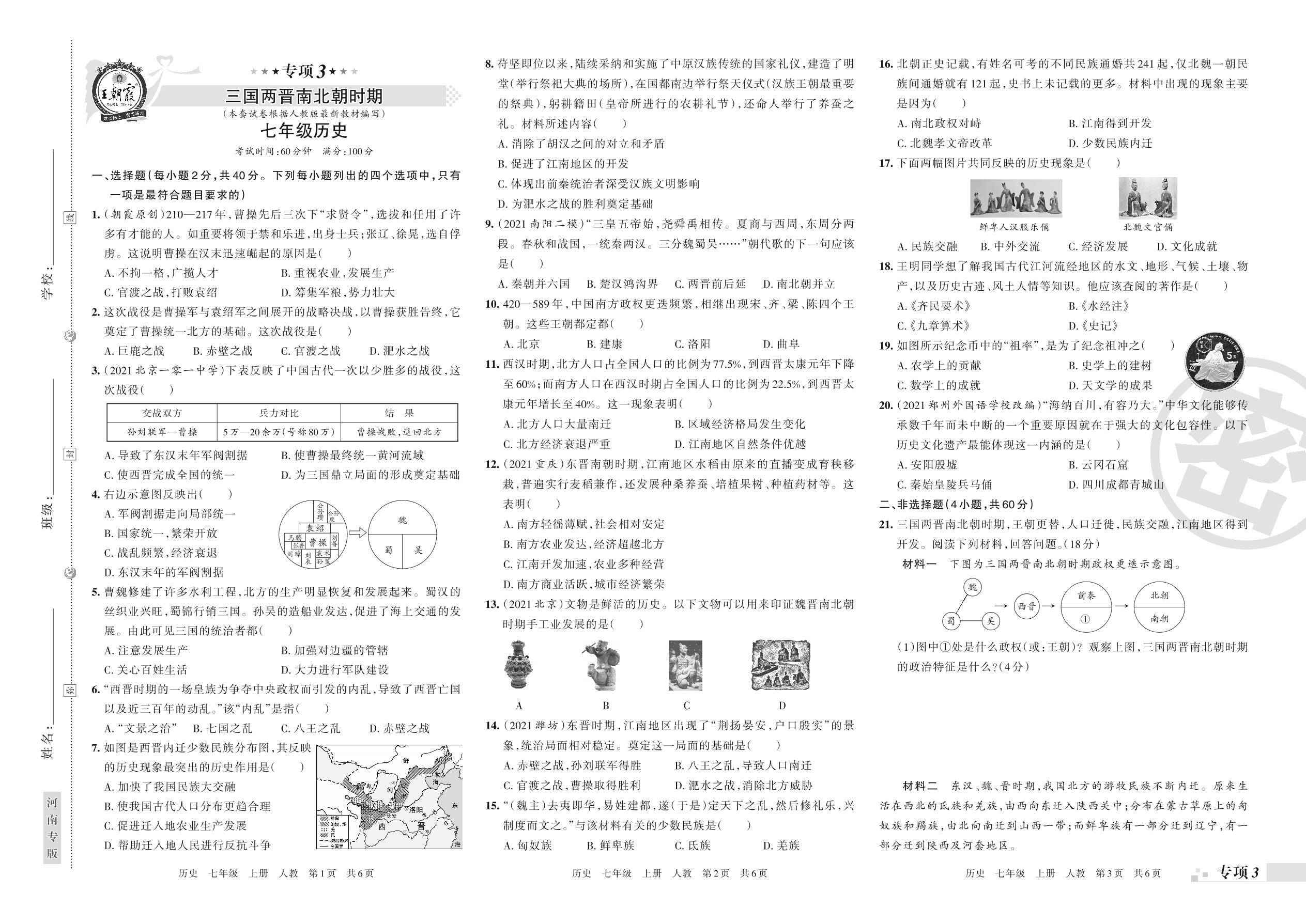 王朝霞期末专项卷——三国两晋南北朝时期七年级上册历史(人教版)_R211203141821546【3】