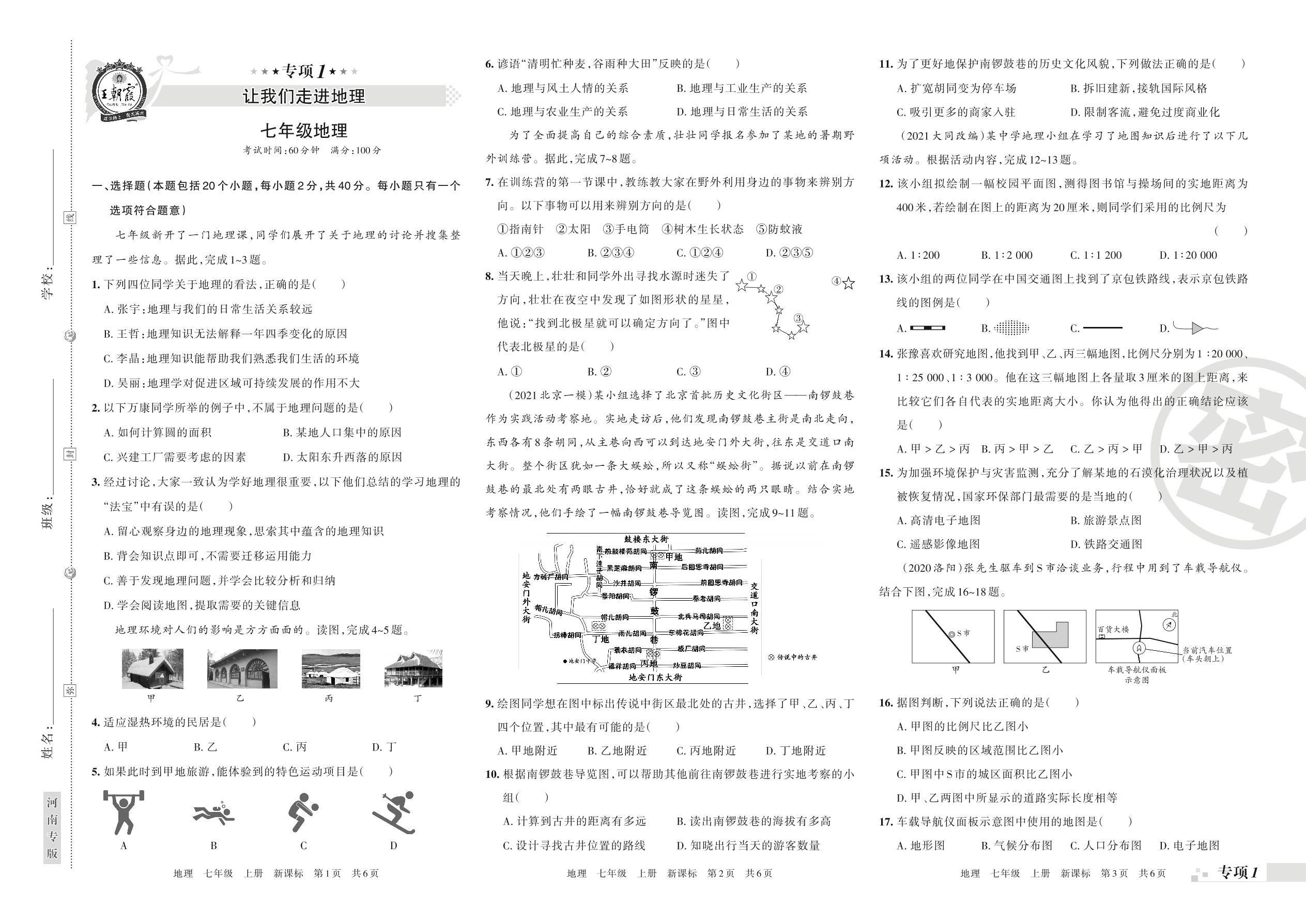 王朝霞期末专项卷——让我们走进地理七年级上册地理(新课标版)【1】