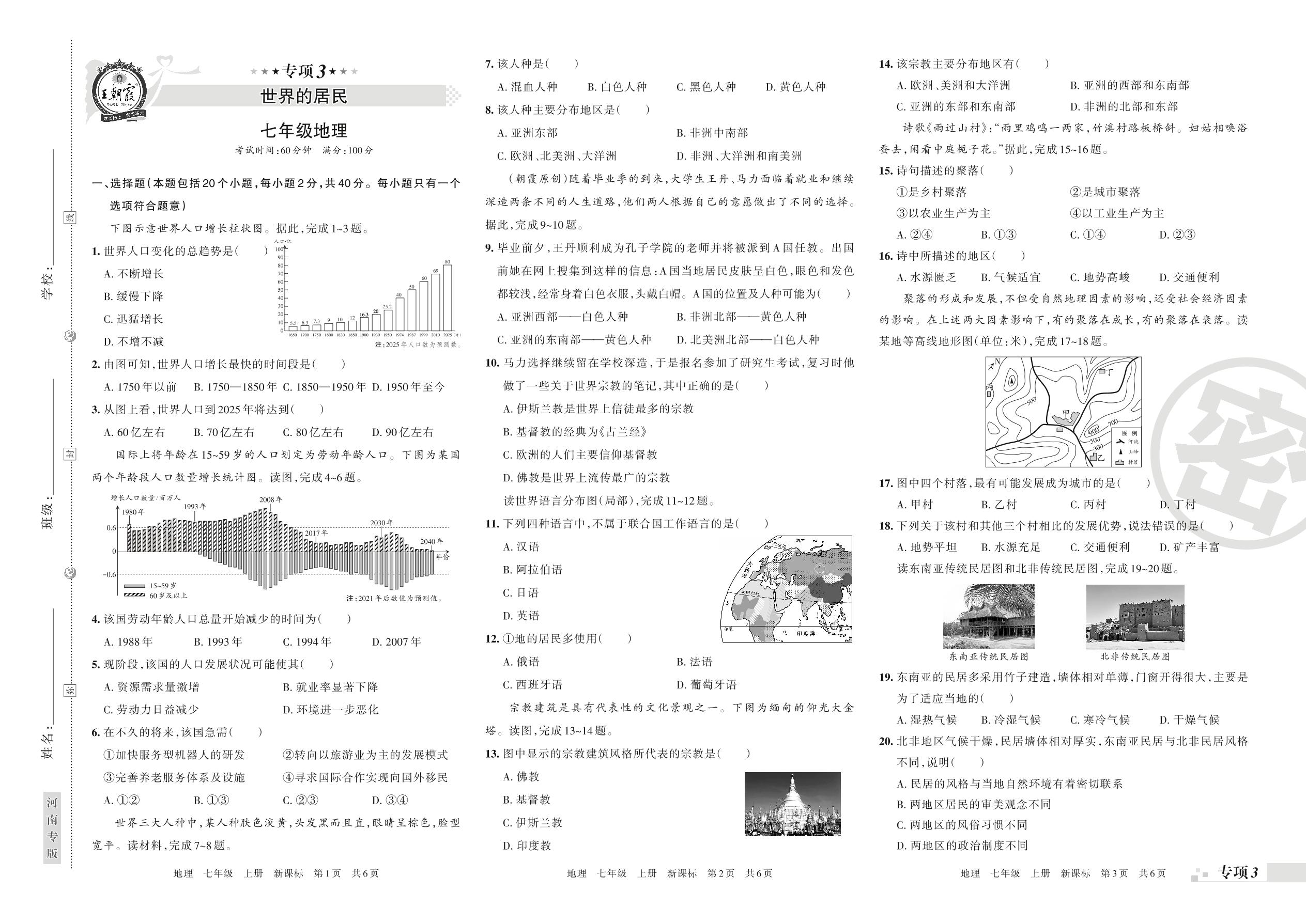 王朝霞期末专项卷——世界的居民七年级上册地理(新课标版)【3】