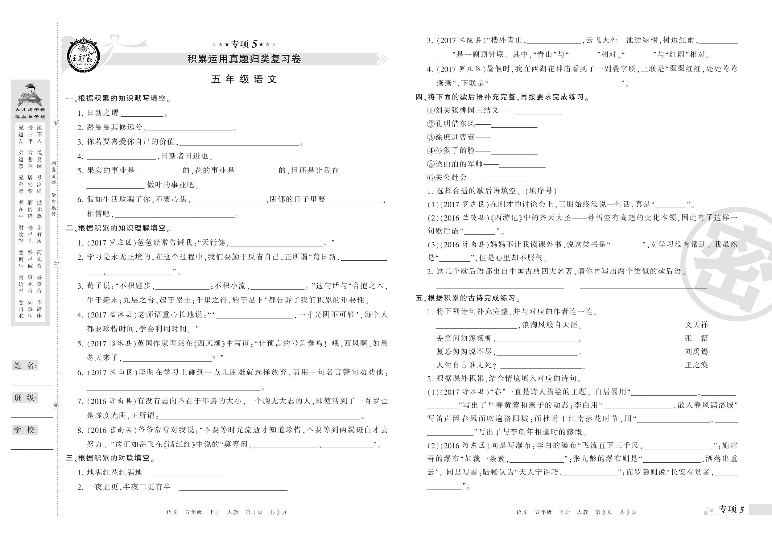 王朝霞期末专项卷——积累运用、课内阅读(一)真题归类复习卷五年级下册语文(人教版)_R210801204752【0】