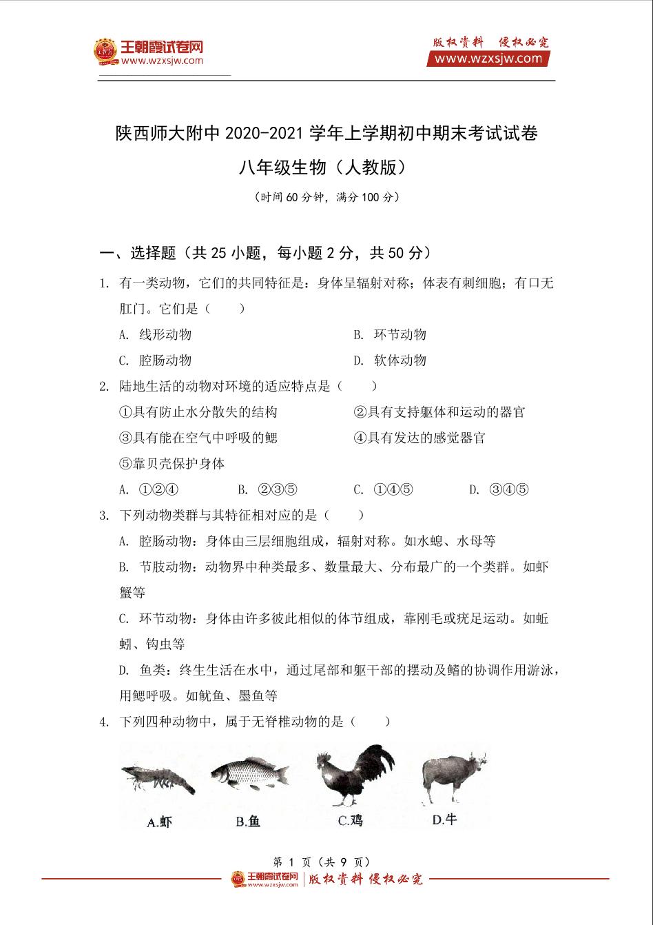 陕西师大附中2020-2021学年上学期初中八年级期末考试生物试卷(人教版)_R211203153040254