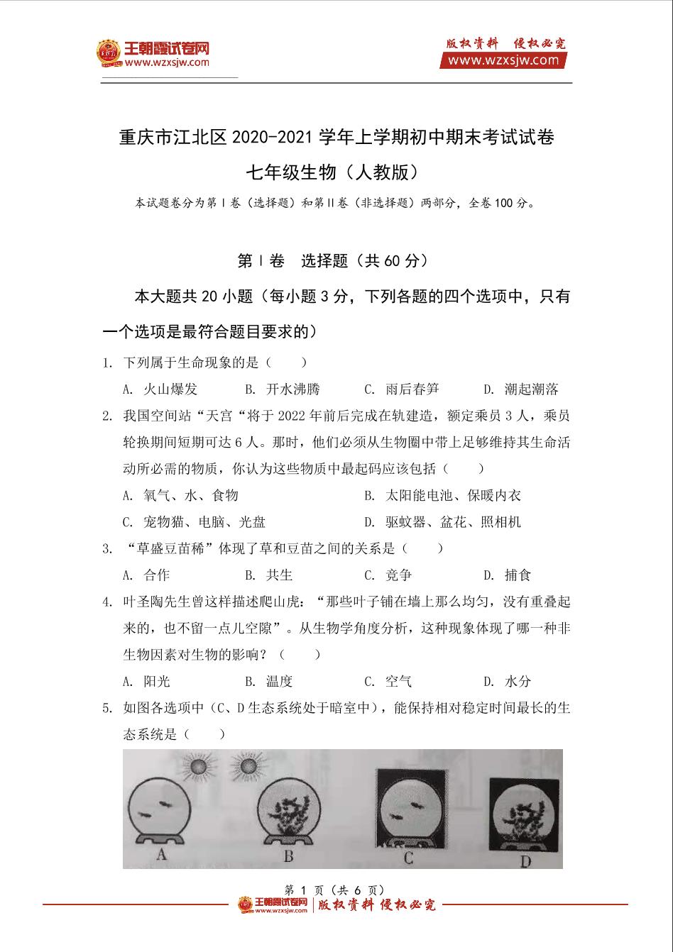 重庆市巴南区2020-2021学年上学期初中七年级期末考试生物试卷(人教版)_R211203153040177