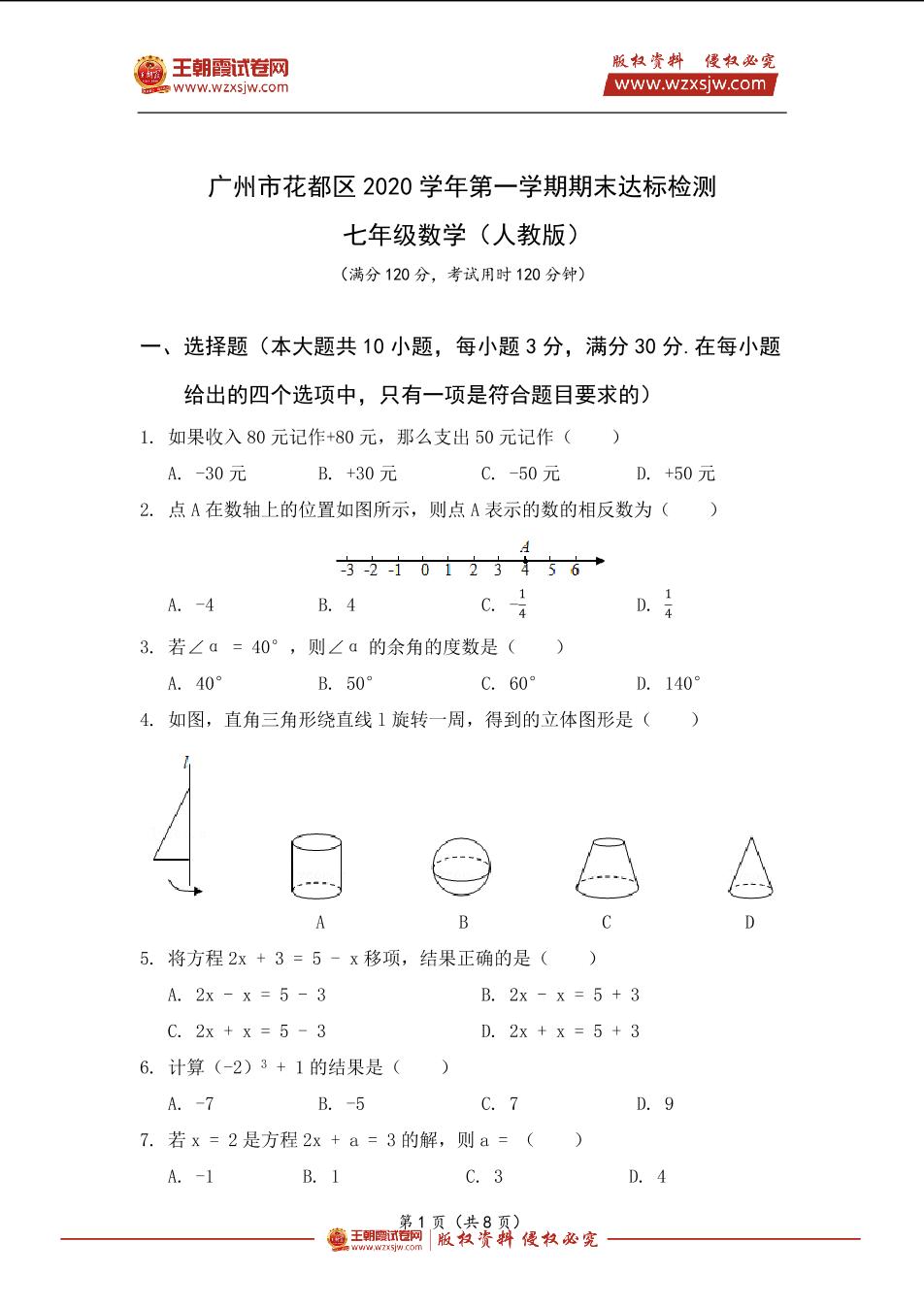 广州市花都区2020学年第一学期期末达标检测七年级数学(人教版)_R211203162522355