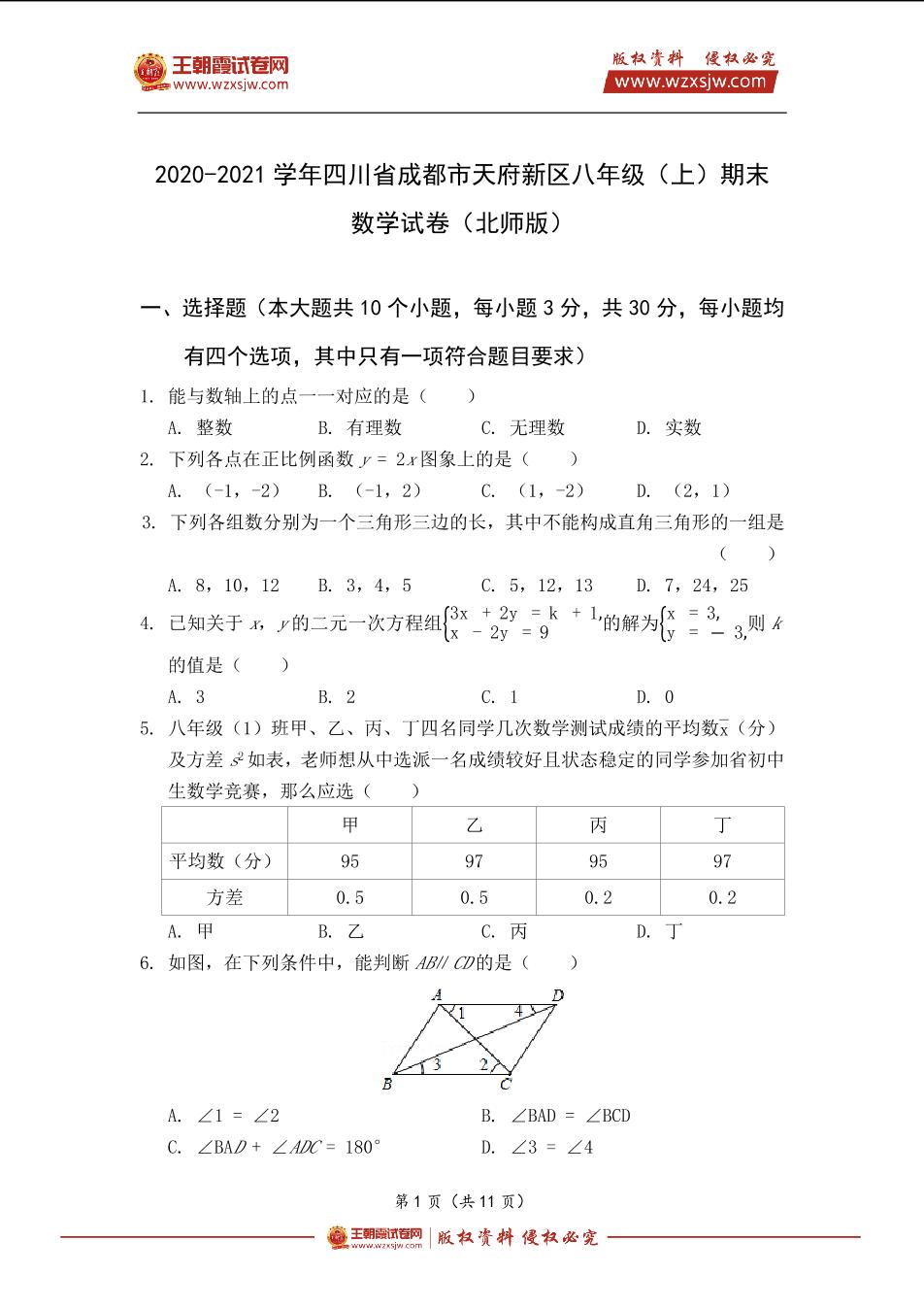四川省成都市天府新区2020-2021学年八年级(上)期末数学试卷(北师版)_R211203162522362