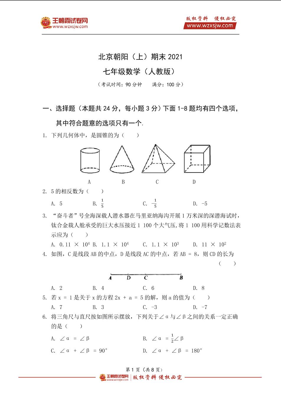 北京市朝阳区2021七年级(上)期末数学(人教版)_R211203162525897