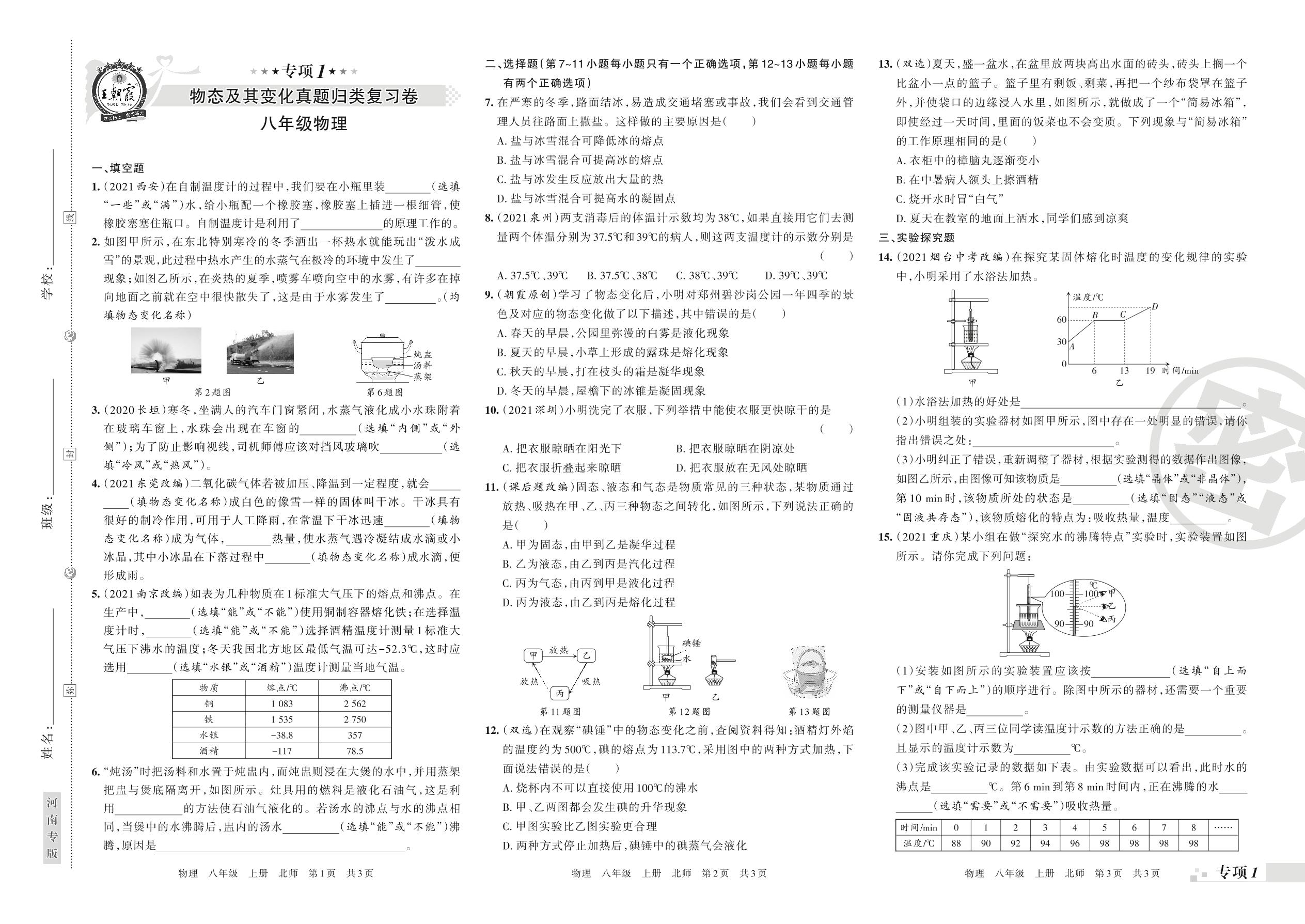 王朝霞期末专项卷——物态及其变化真题归类复习卷八年级上册物理(北师版)【1】