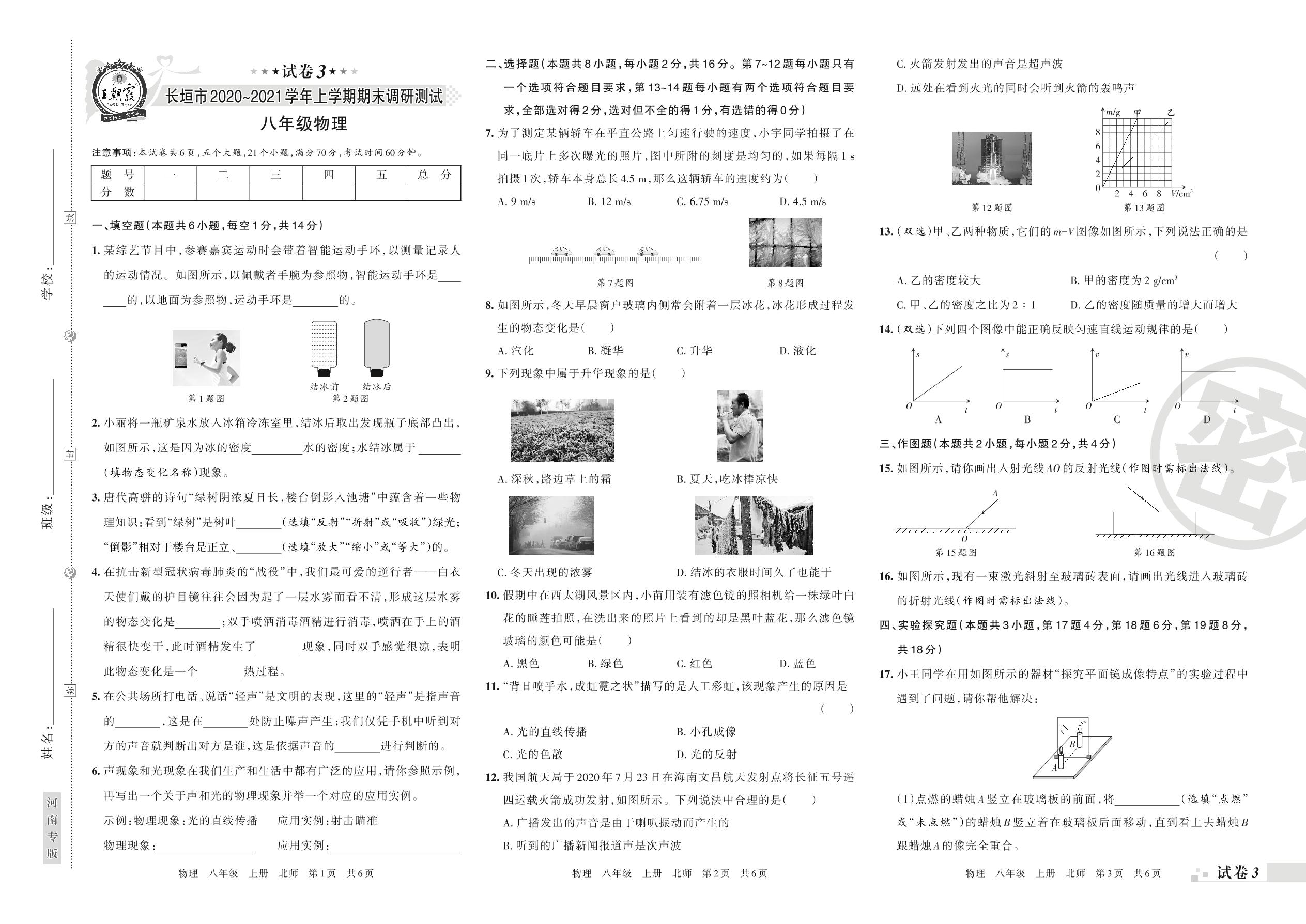 八年级物理北师版上册期末卷