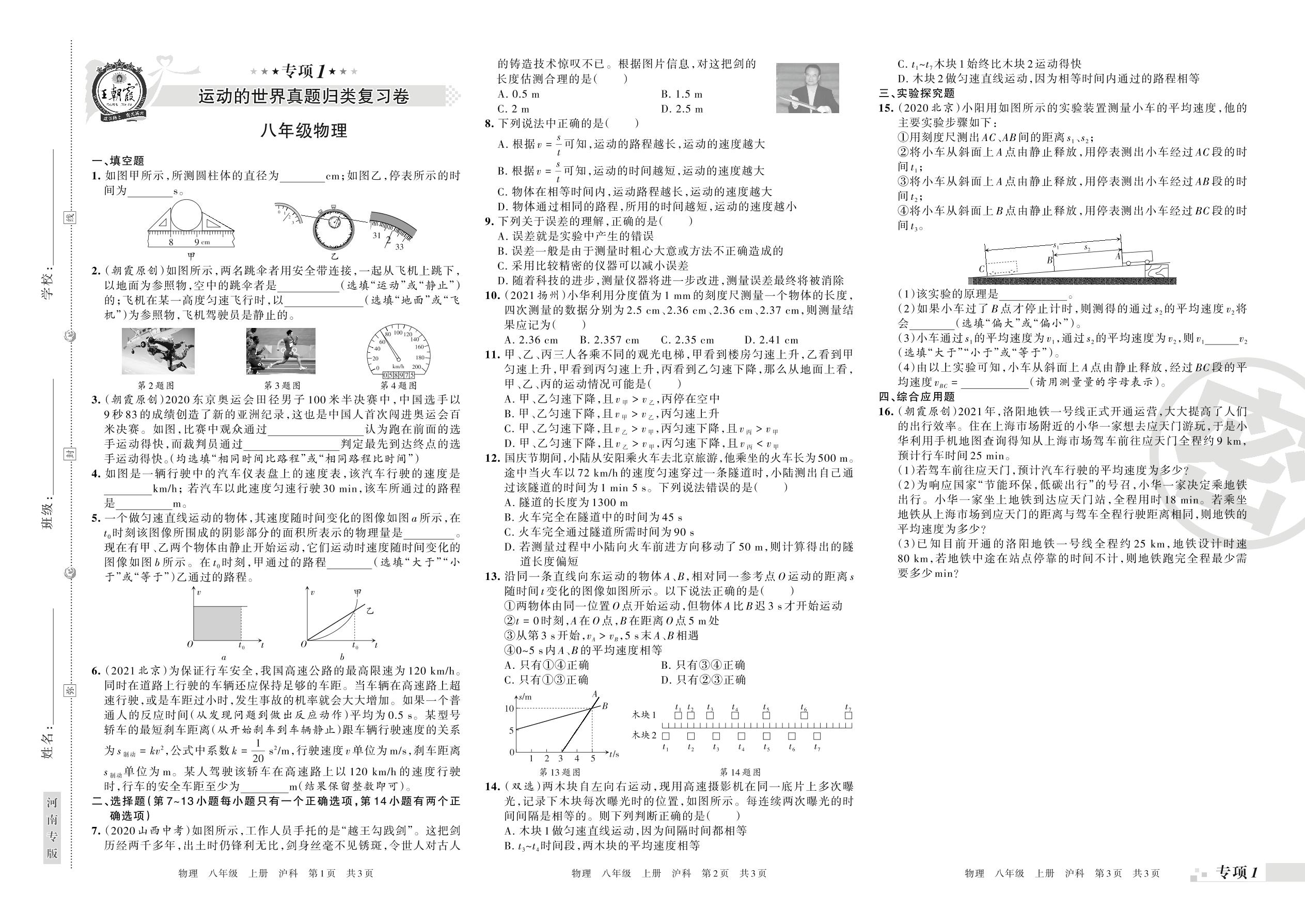 王朝霞期末专项卷——运动的世界真题归类复习卷八年级上册物理(沪科版)_R211204093026232【1】