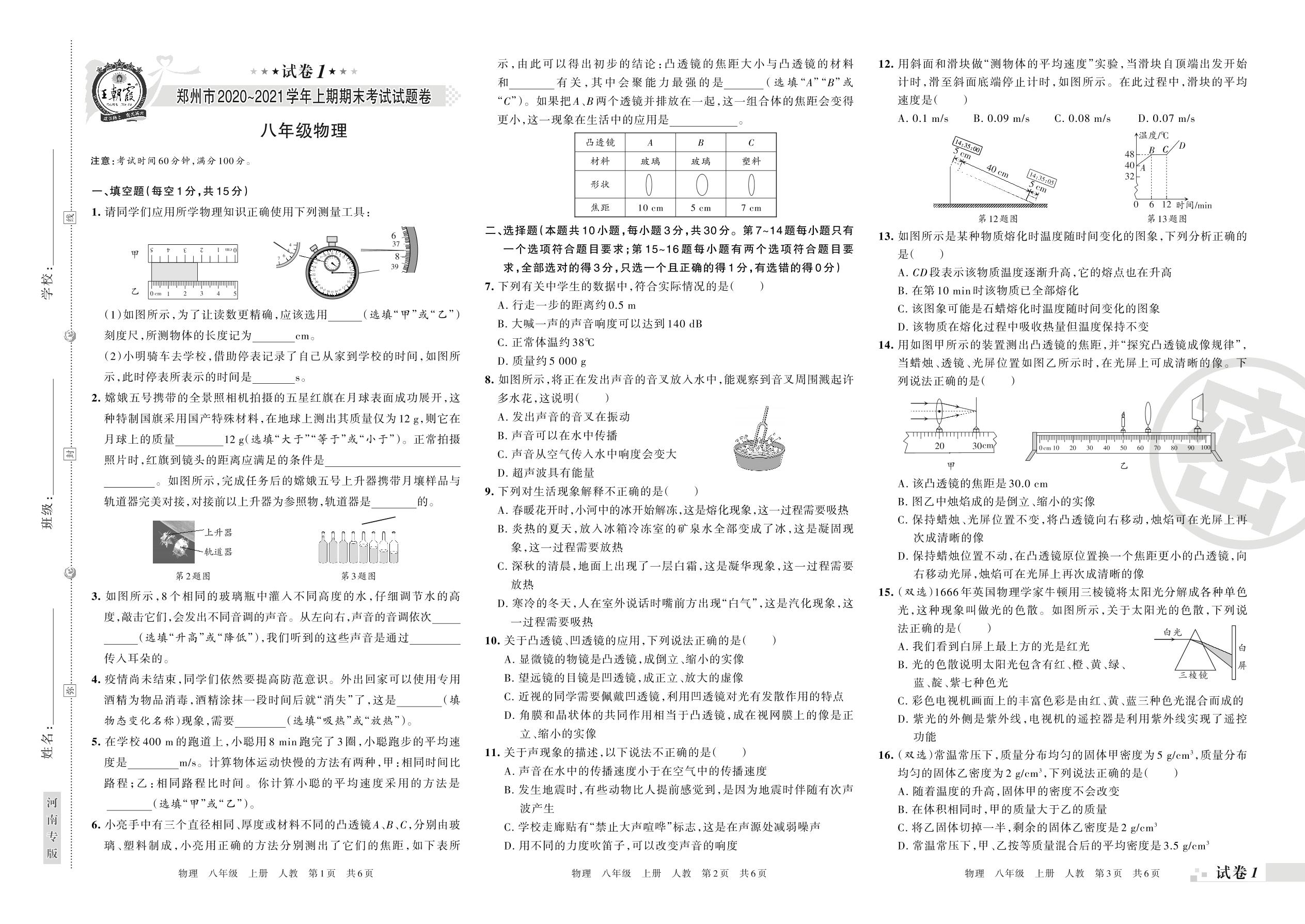 郑州市2020~2021学年上期期末考试试题卷八年级物理(人教版)_R211204093352912【1】