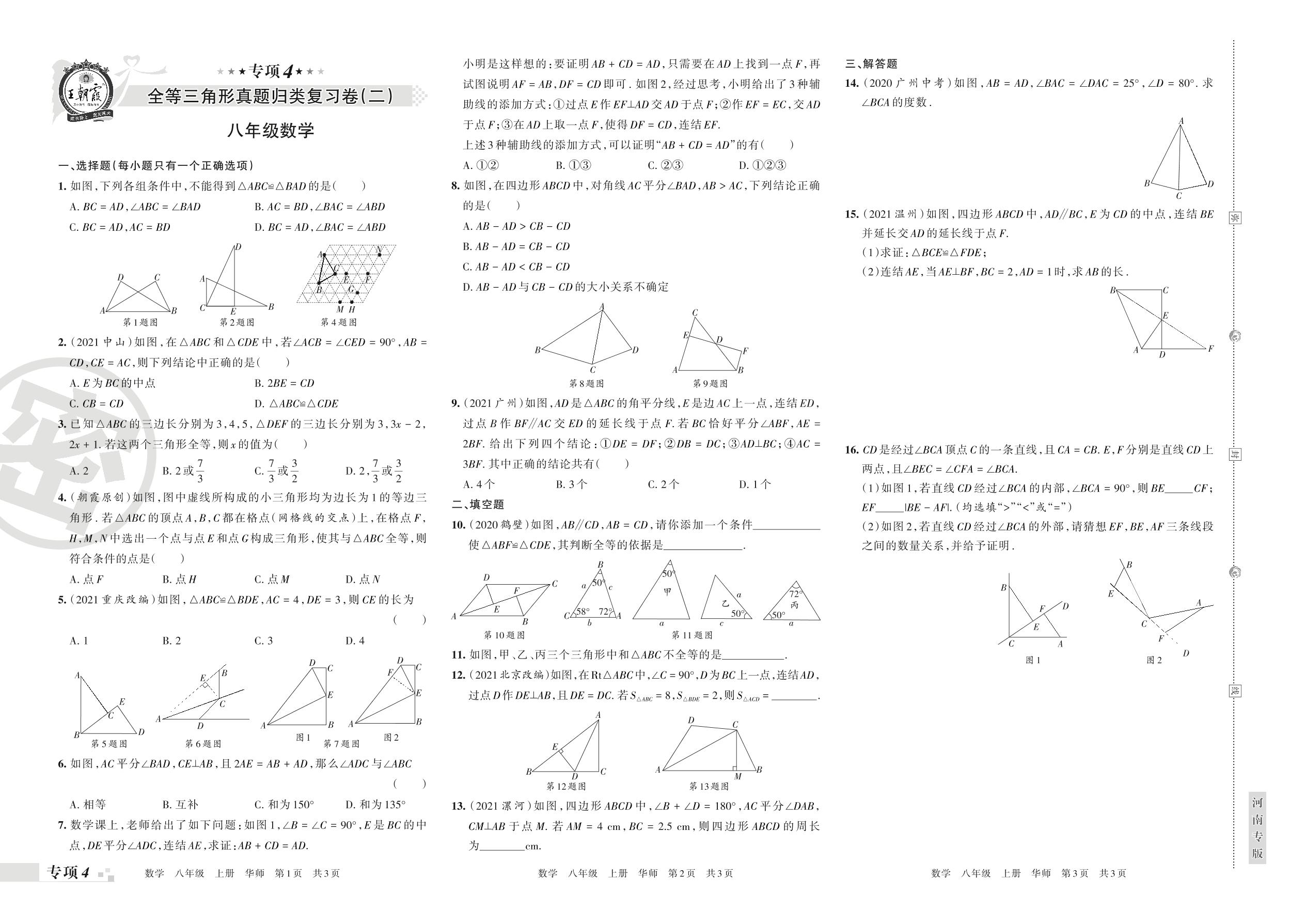 王朝霞期末专项卷——全等三角形真题归类复习卷(二)八年级上册数学(华师版)【4】