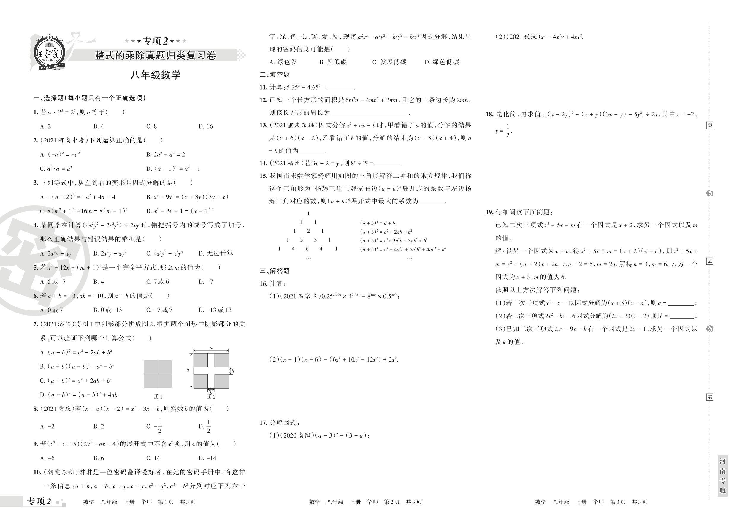 王朝霞期末专项卷——整式的乘除真题归类复习卷八年级上册数学(华师版)【2】