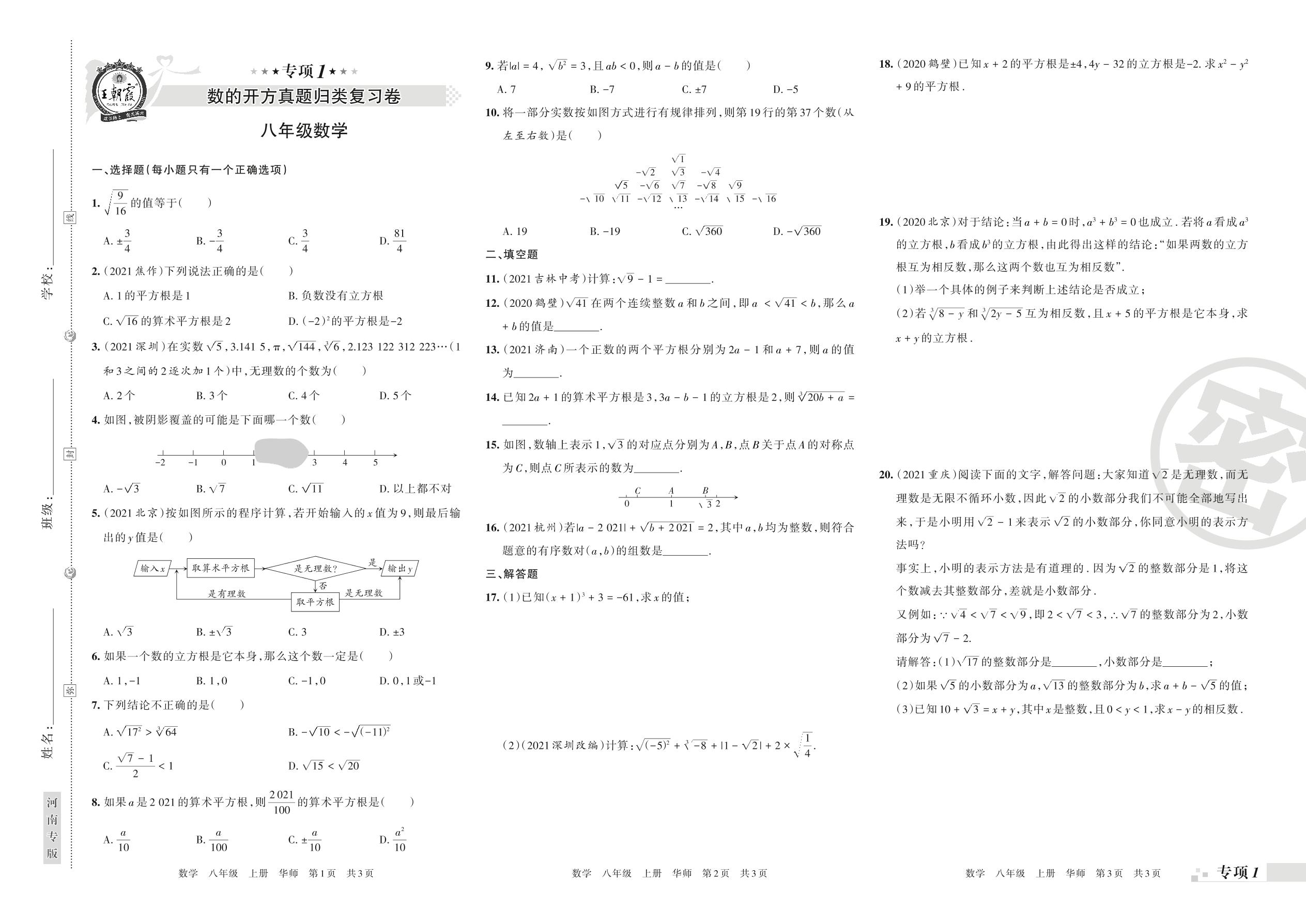 王朝霞期末专项卷——数的开方真题归类复习卷八年级上册数学(华师版)【1】