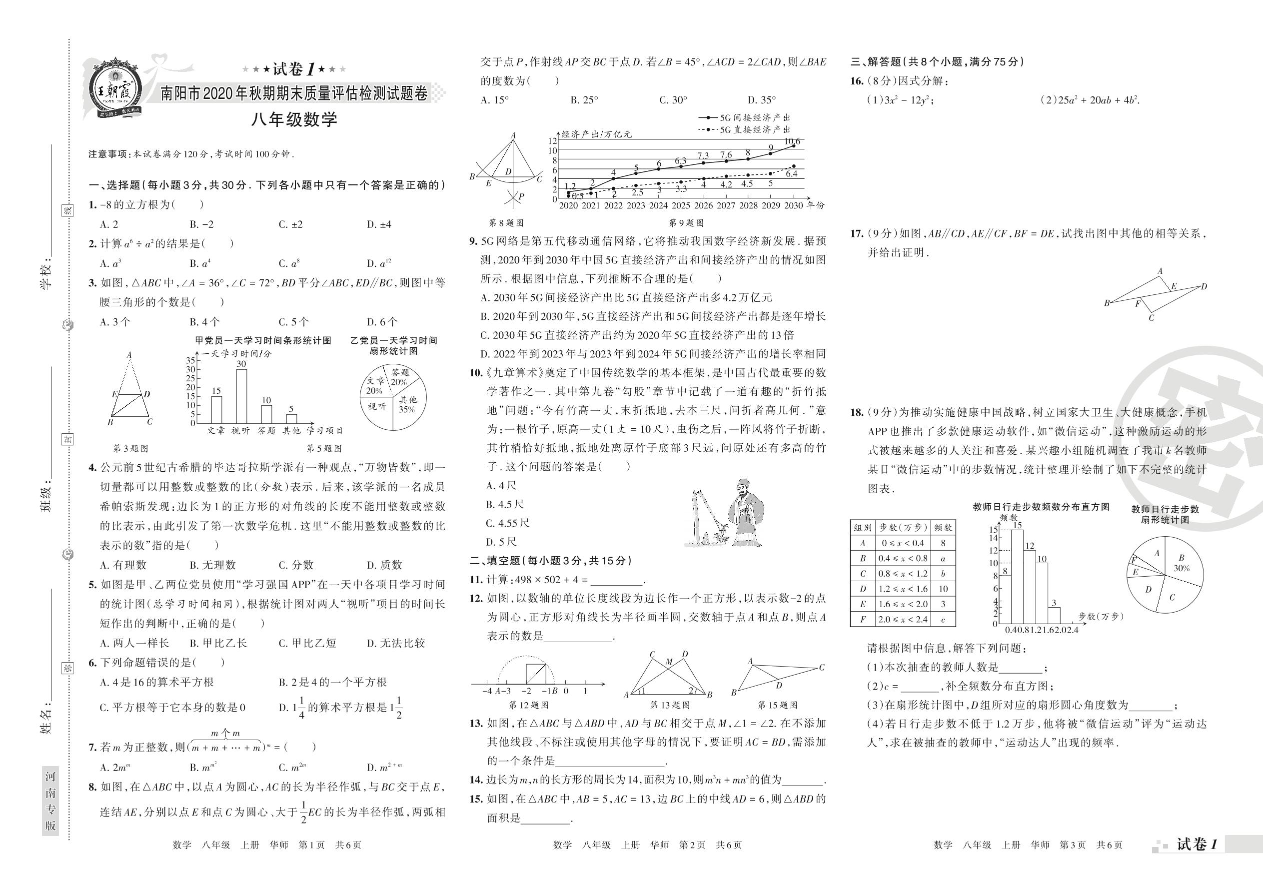 南阳市2020年秋期期末质量评估检测试题卷八年级数学(华师版)【1】
