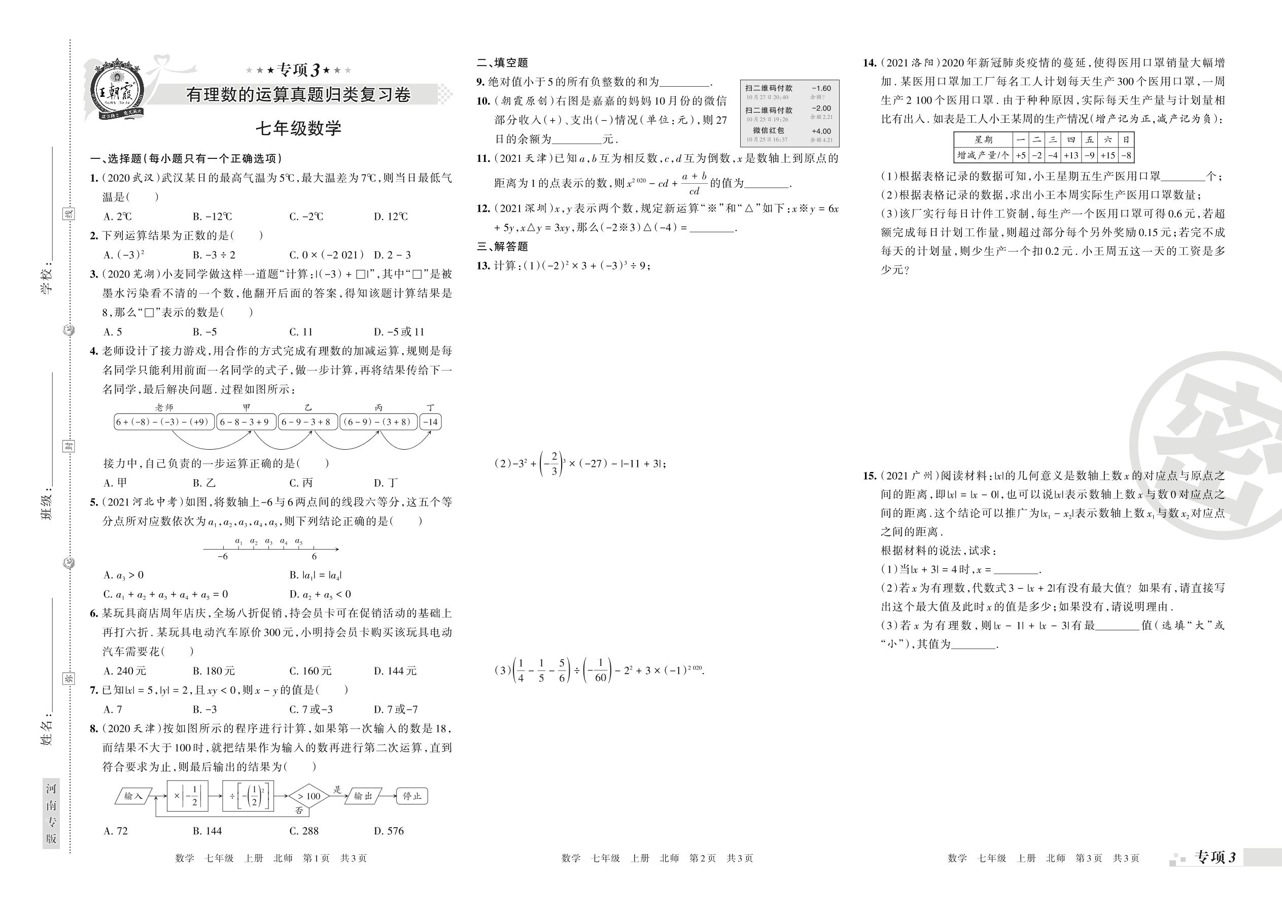 王朝霞期末专项卷——有理数的运算真题归类复习卷七年级上册数学(北师版)_R211204094523051【3】