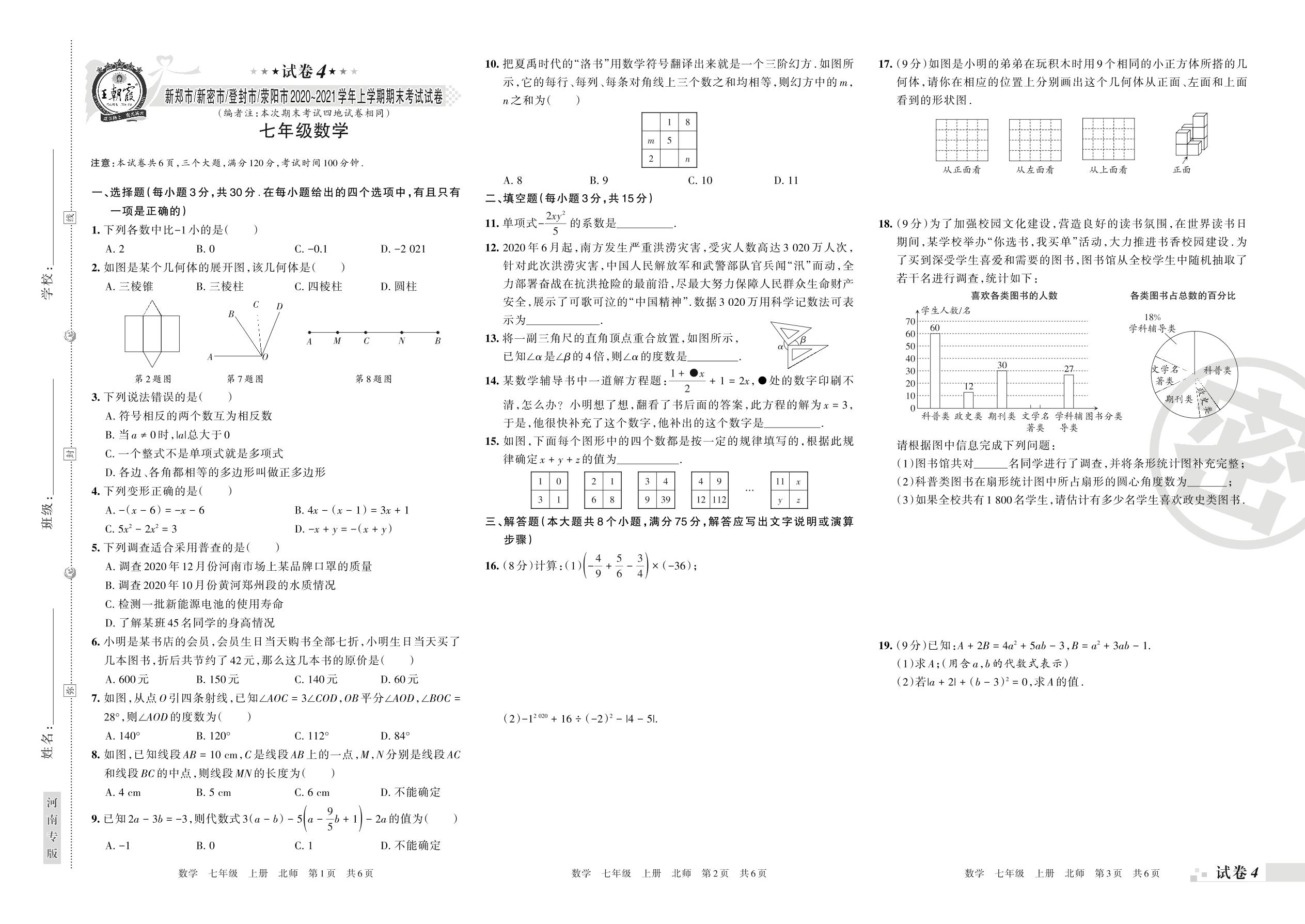 新郑市、新密市、登封市、荥阳市2020~2021学年上学期期末考试七年级数学(北师版)【4】