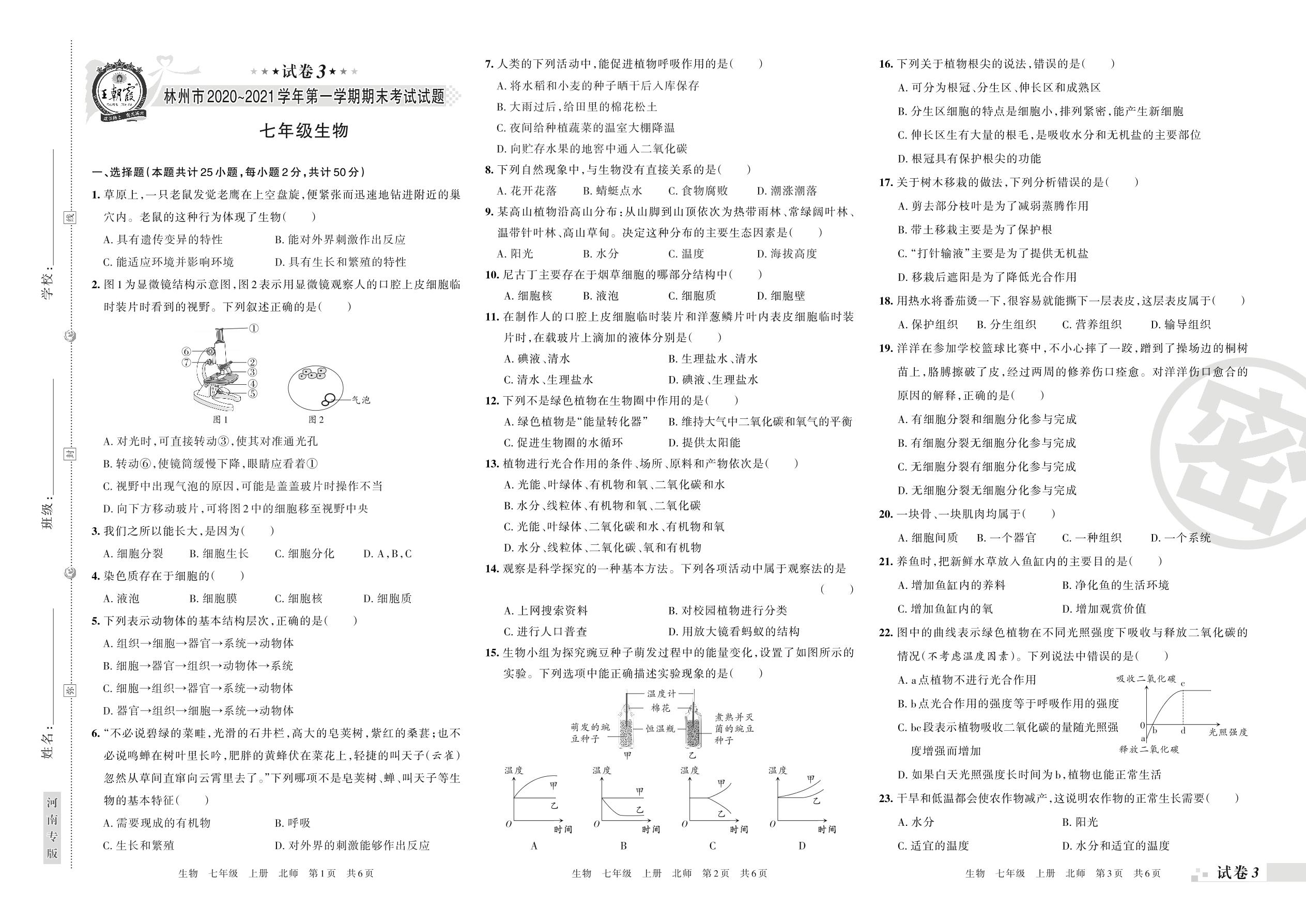 林州市2020~2021学年第一学期期末考试试题七年级生物(北师版)【3】