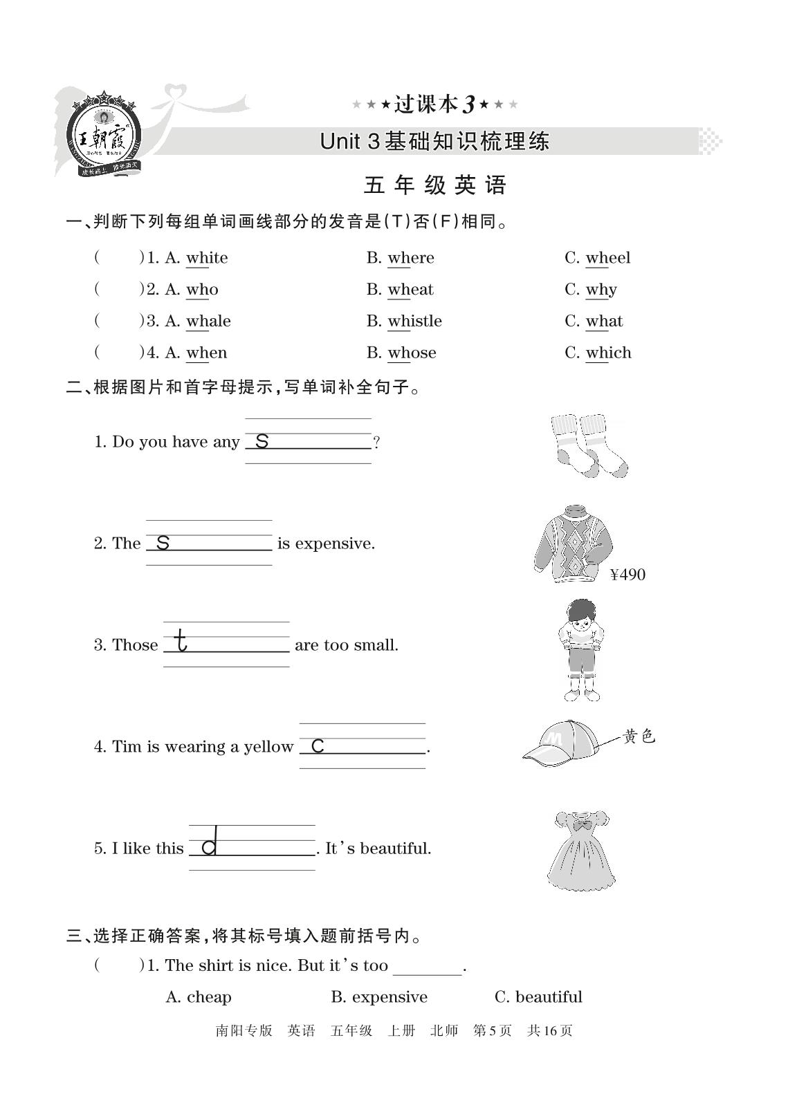 王朝霞期末过课本——Unit 3基础知识梳理练五年级上册英语(北师版)【3】