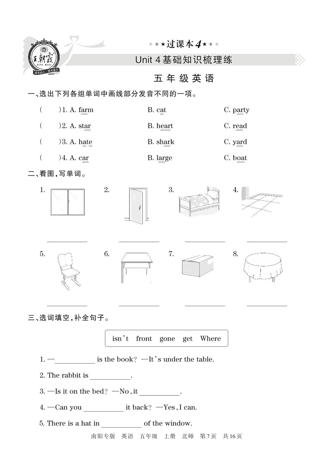 王朝霞期末过课本——Unit 4基础知识梳理练五年级上册英语(北师版)【4】