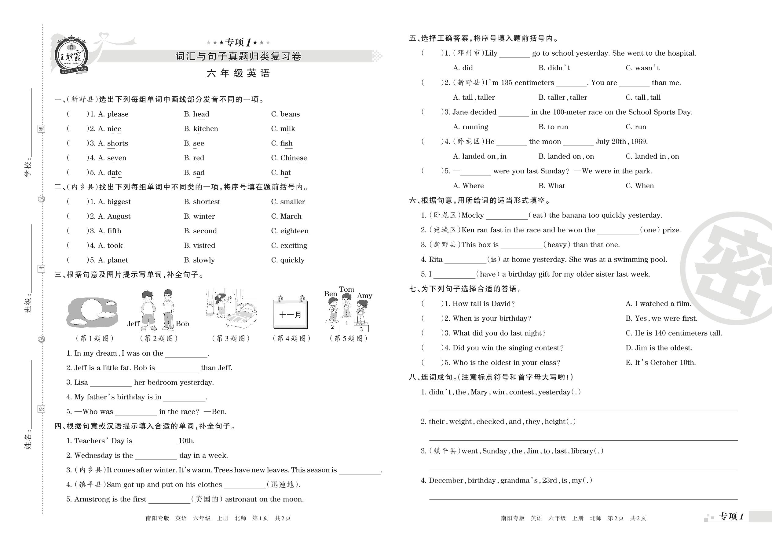 王朝霞期末专项卷——词汇与句子真题归类复习卷六年级上册英语(北师版)【1】