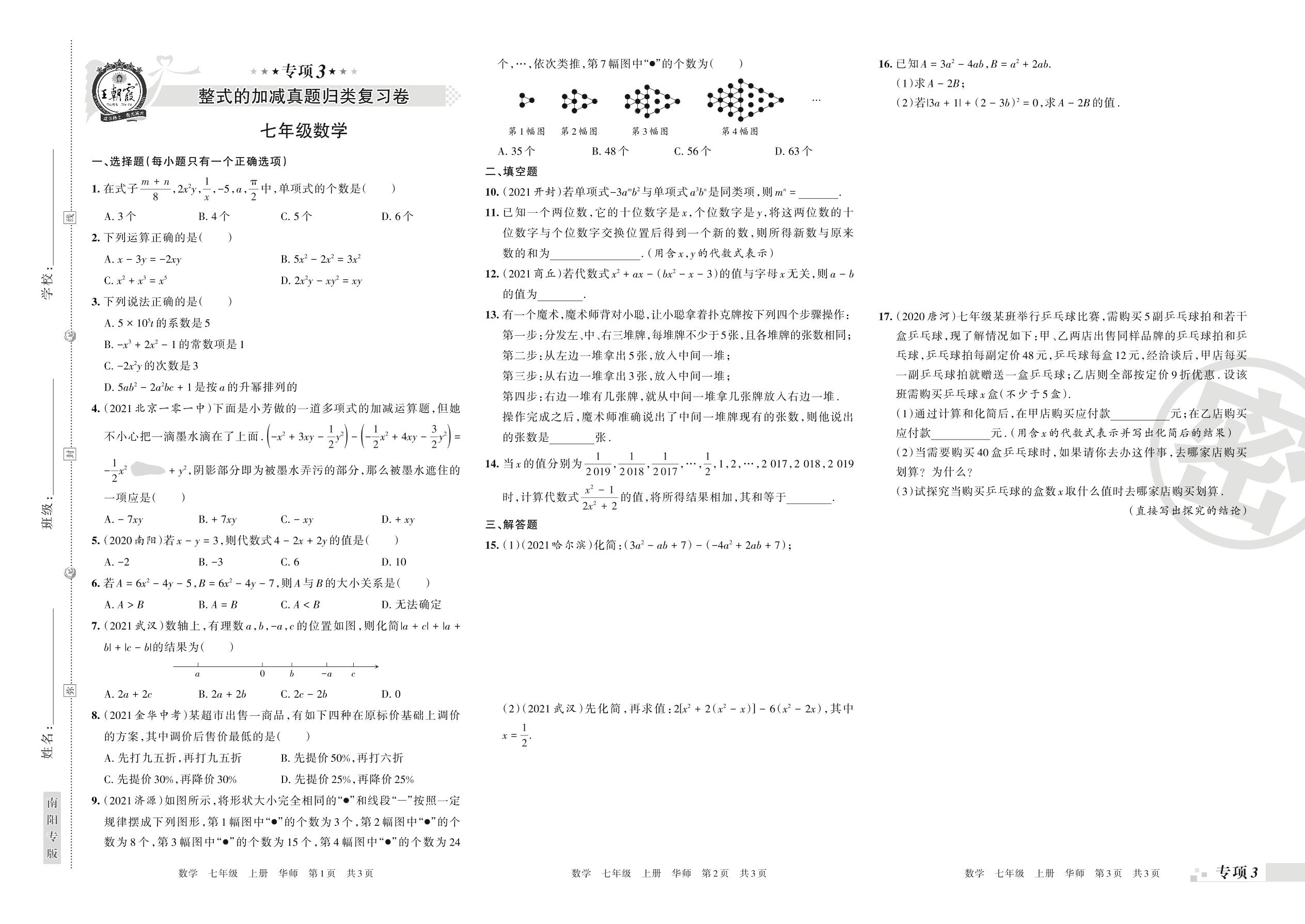 王朝霞期末专项卷——整式的加减真题归类复习卷七年级上册数学(华师版)_R211206100415021【3】