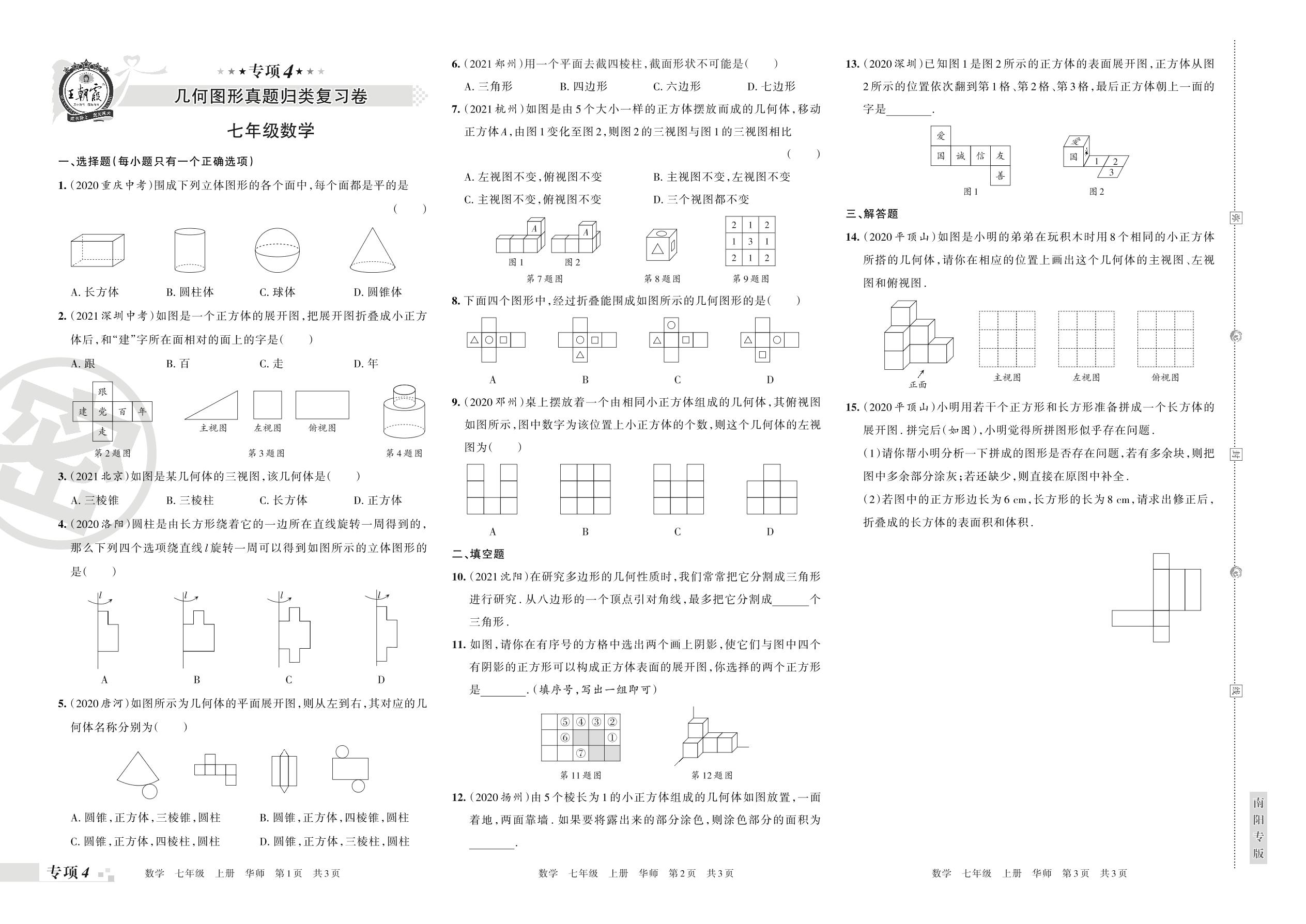 王朝霞期末专项卷——几何图形真题归类复习卷七年级上册数学(华师版)_R211206100415267【4】