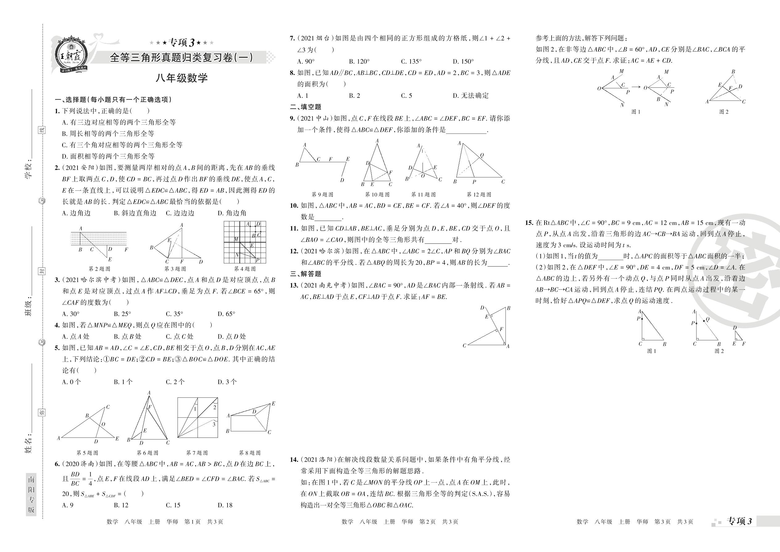王朝霞期末专项卷——全等三角形真题归类复习卷(一)八年级上册数学(华师版)_R211206101006296【3】