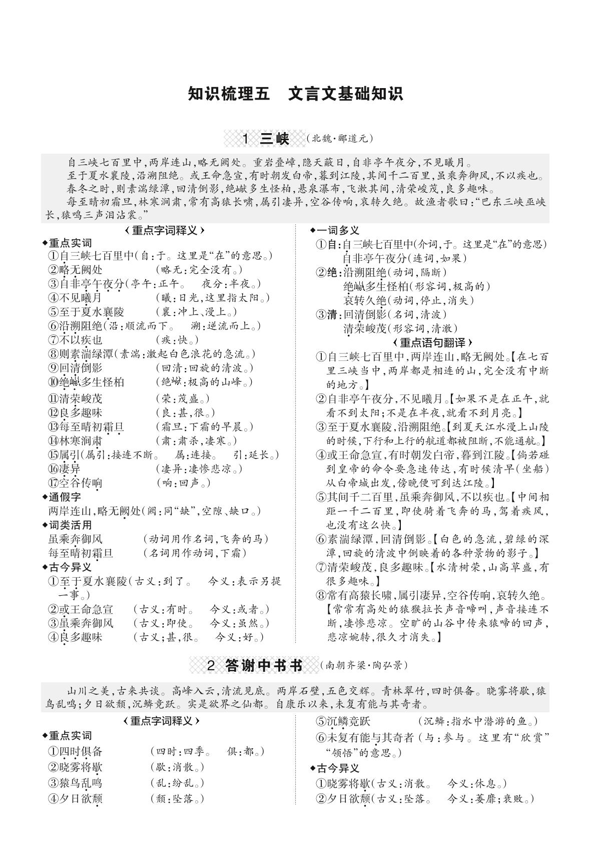 王朝霞期末过课本——知识梳理五 文言文基础知识八年级上册语文(人教版)_R211206102221104【5】