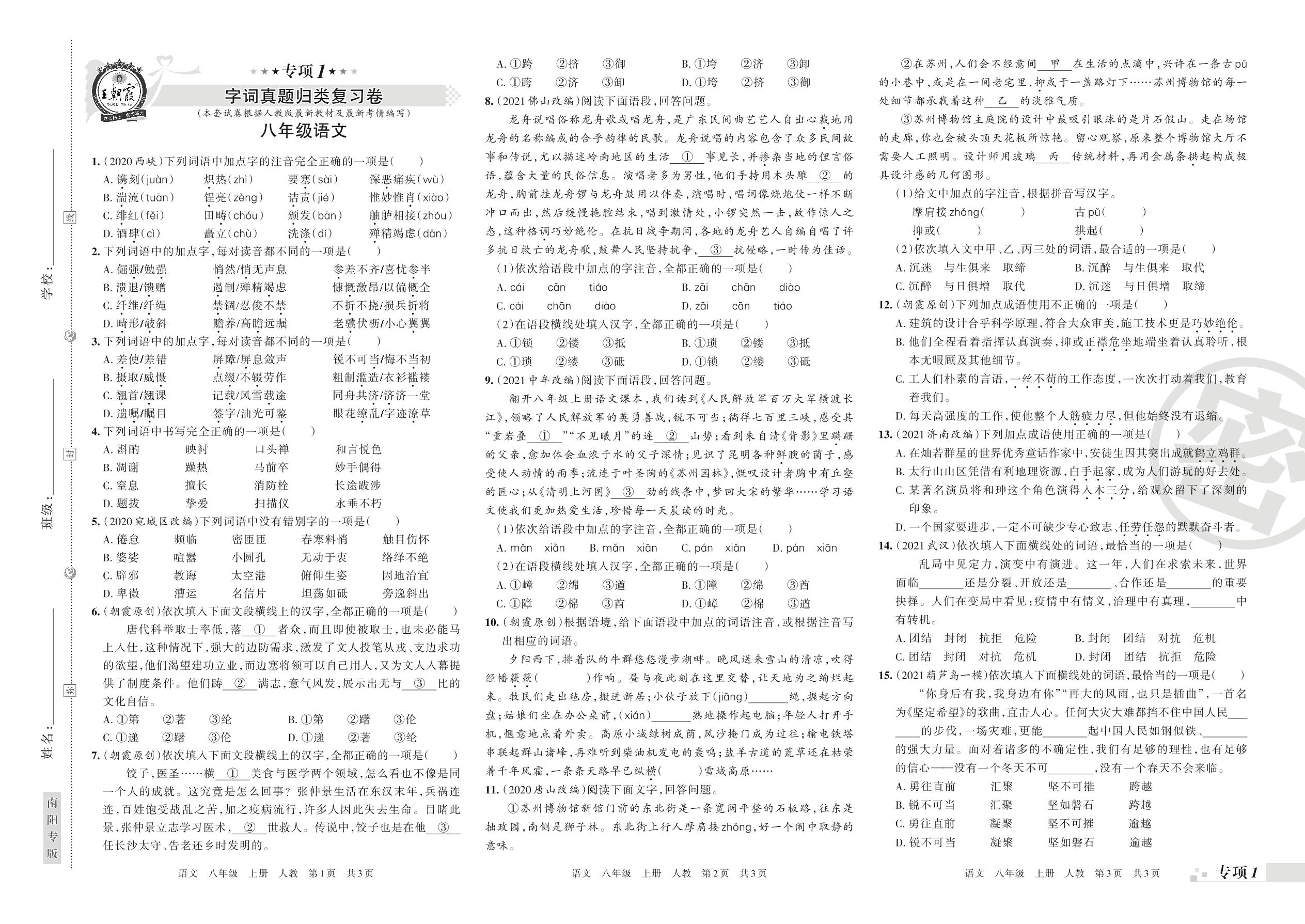 王朝霞期末专项卷——字词真题归类复习卷八年级上册语文(人教版)_R211206102222855【1】