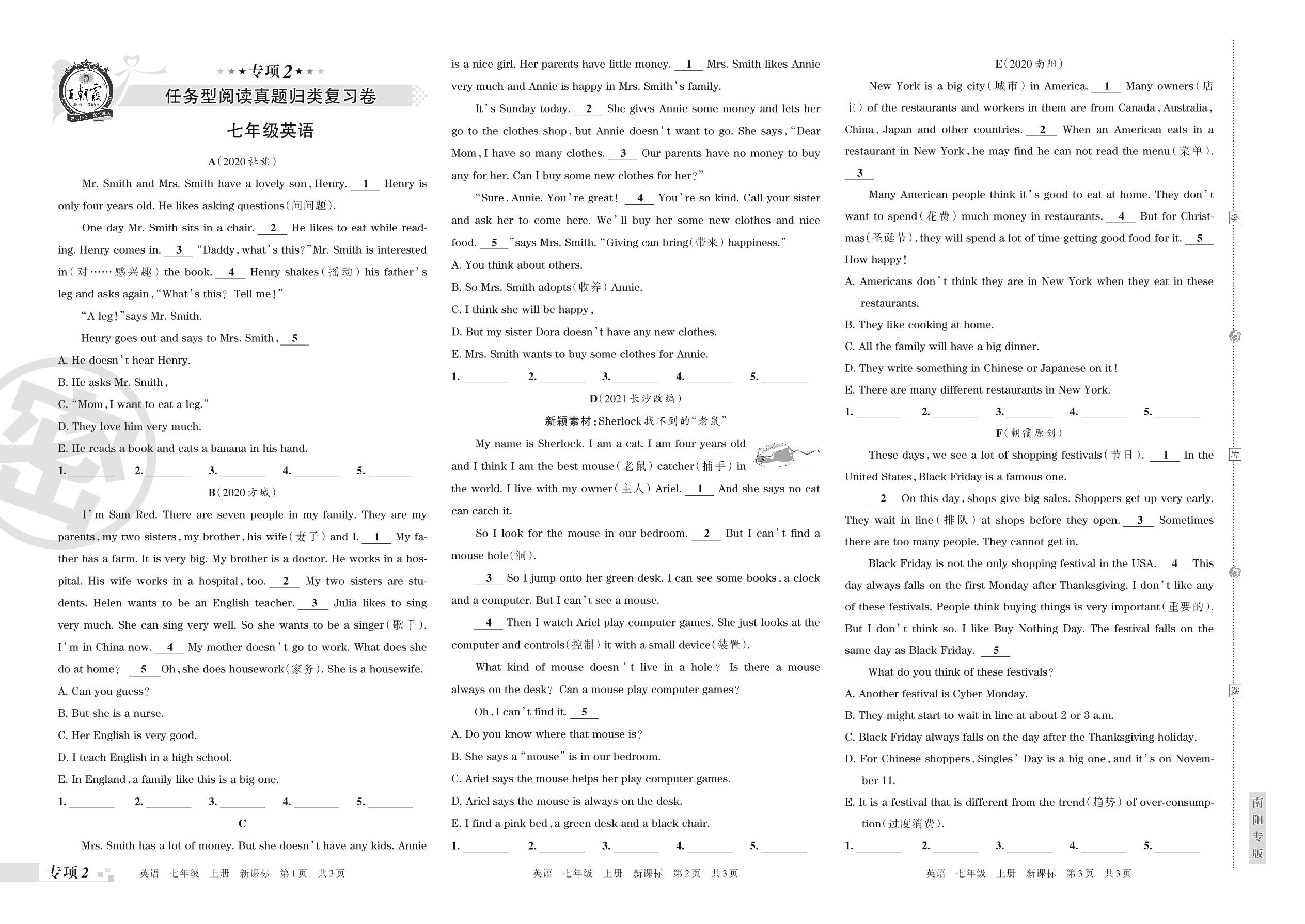 王朝霞期末专项卷——任务型阅读真题归类复习卷七年级上册英语(新课标版)【2】