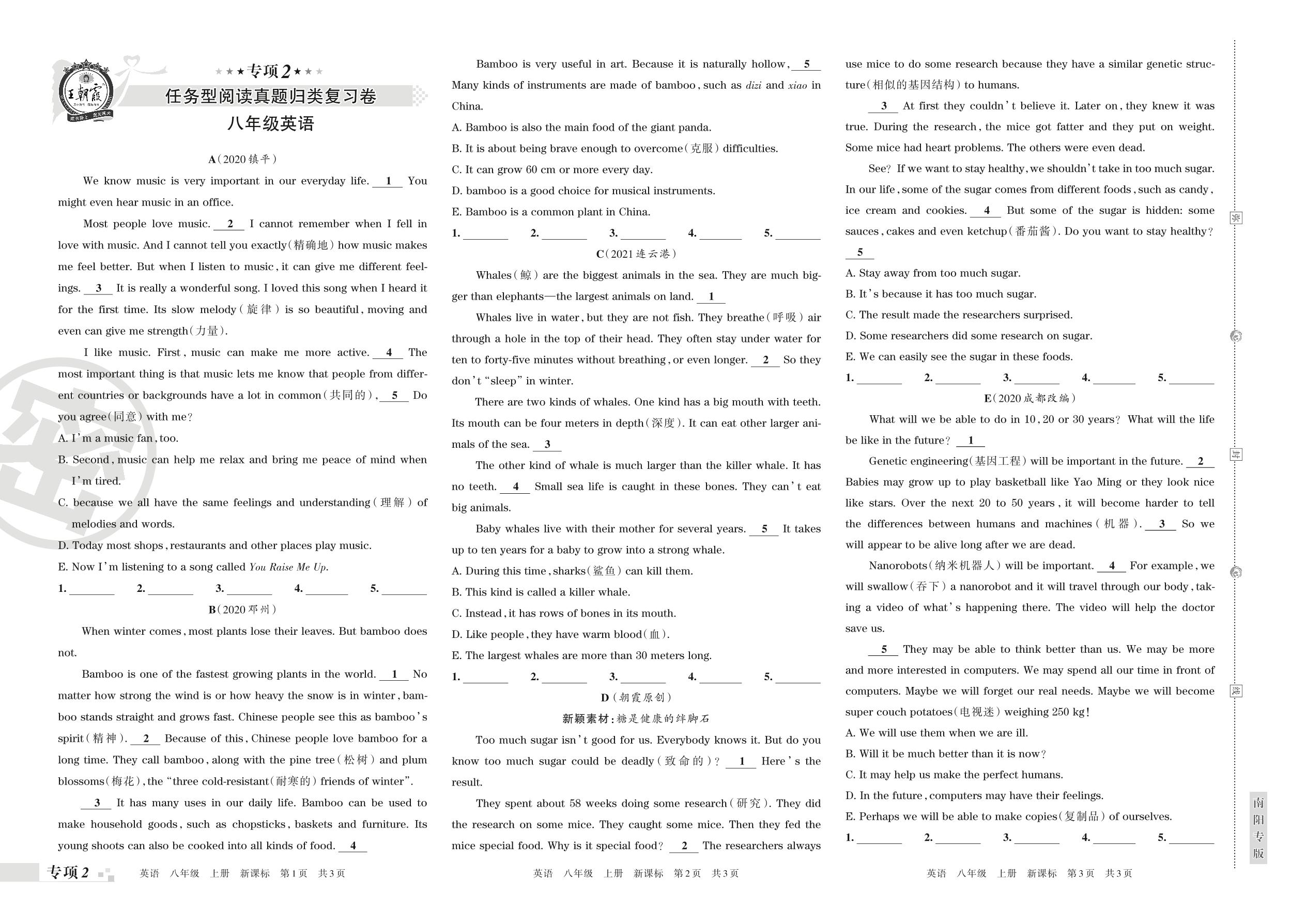 王朝霞期末专项卷——任务型阅读真题归类复习卷八年级上册英语(新课标版)【2】
