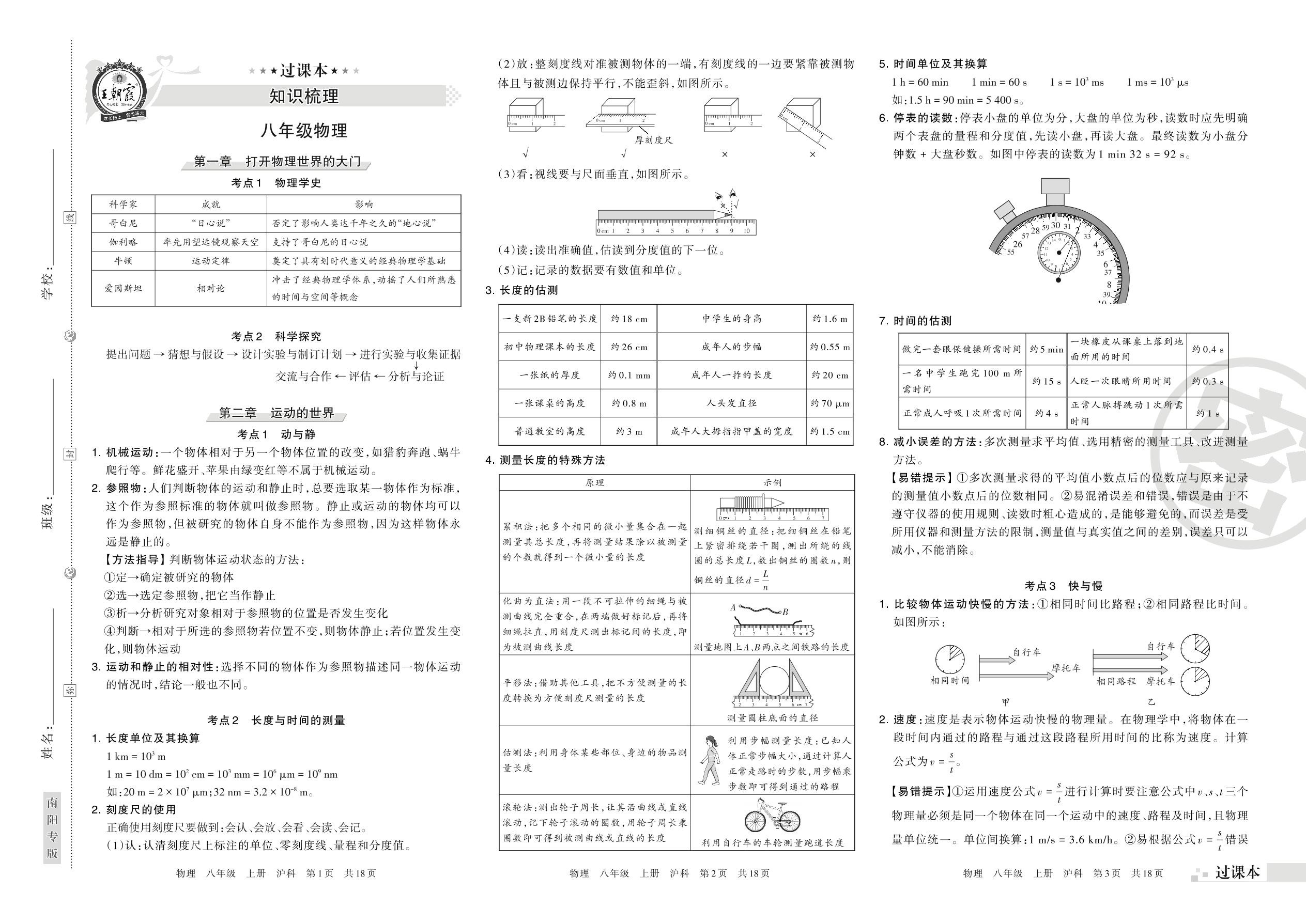王朝霞期末知识梳理八年级上册物理(沪科版)