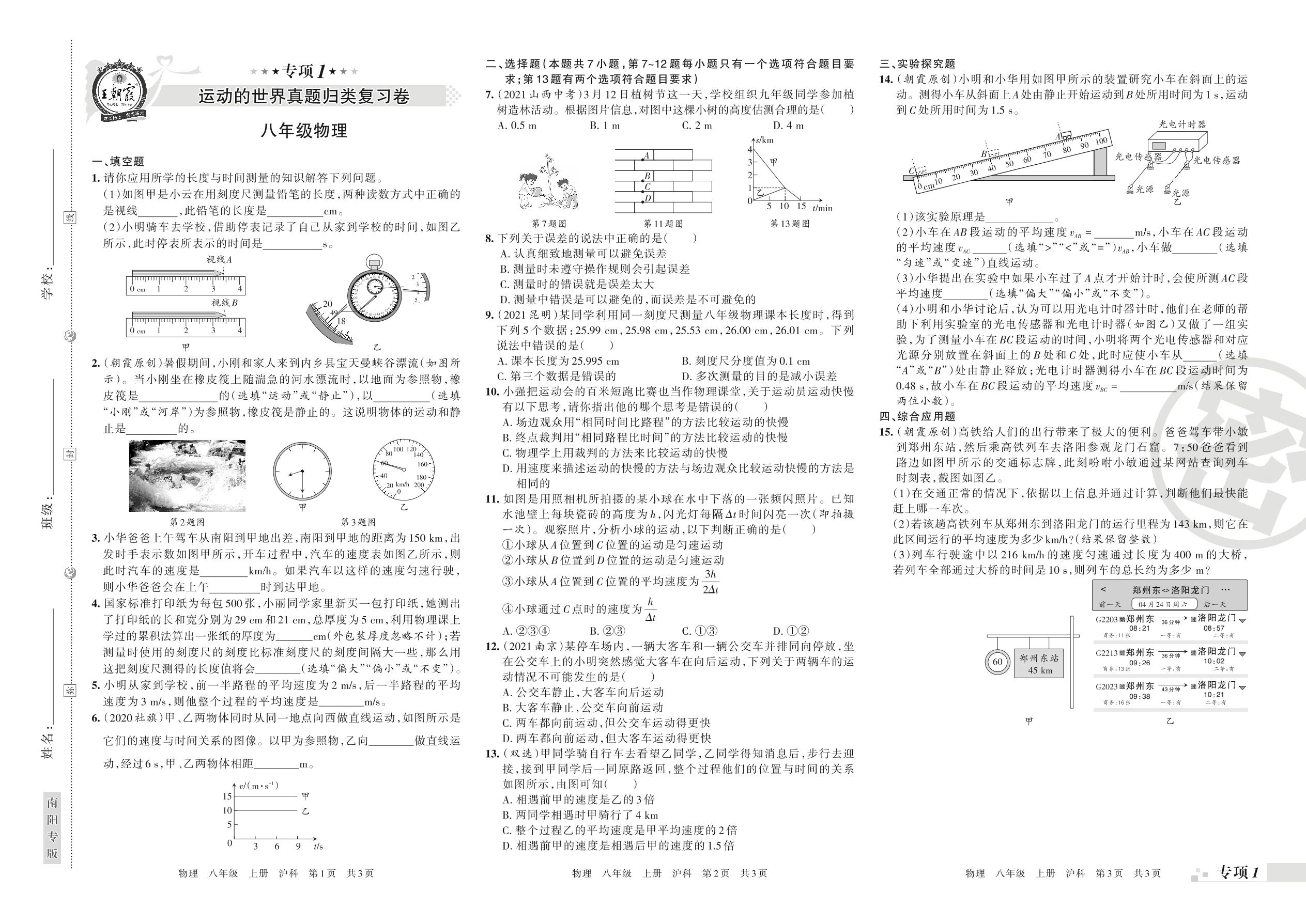 王朝霞期末专项卷——运动的世界真题归类复习卷八年级上册物理(沪科版)_R211206104035466【1】
