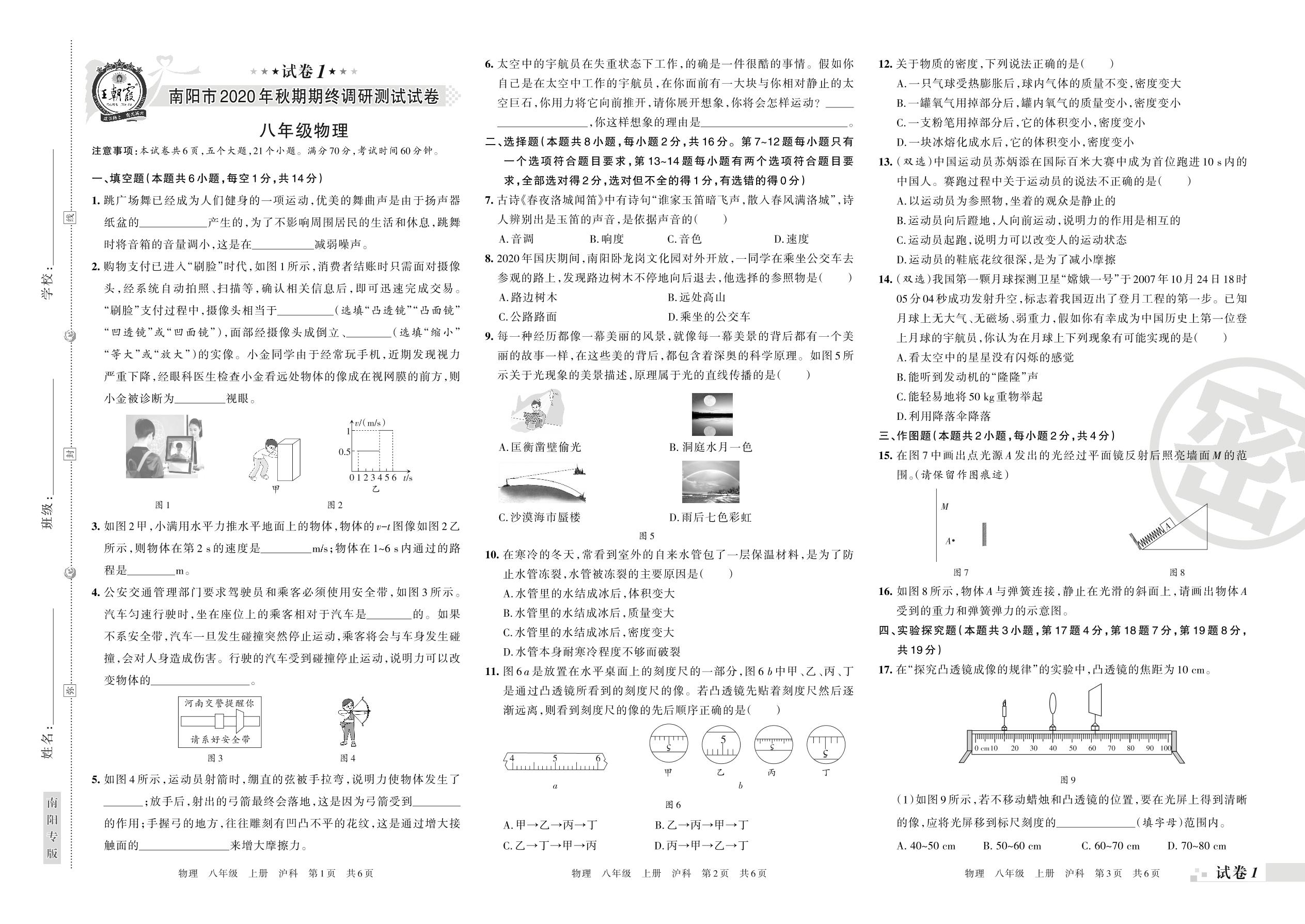 南阳市2020年秋期期终调研测试试卷八年级物理(沪科版)【1】