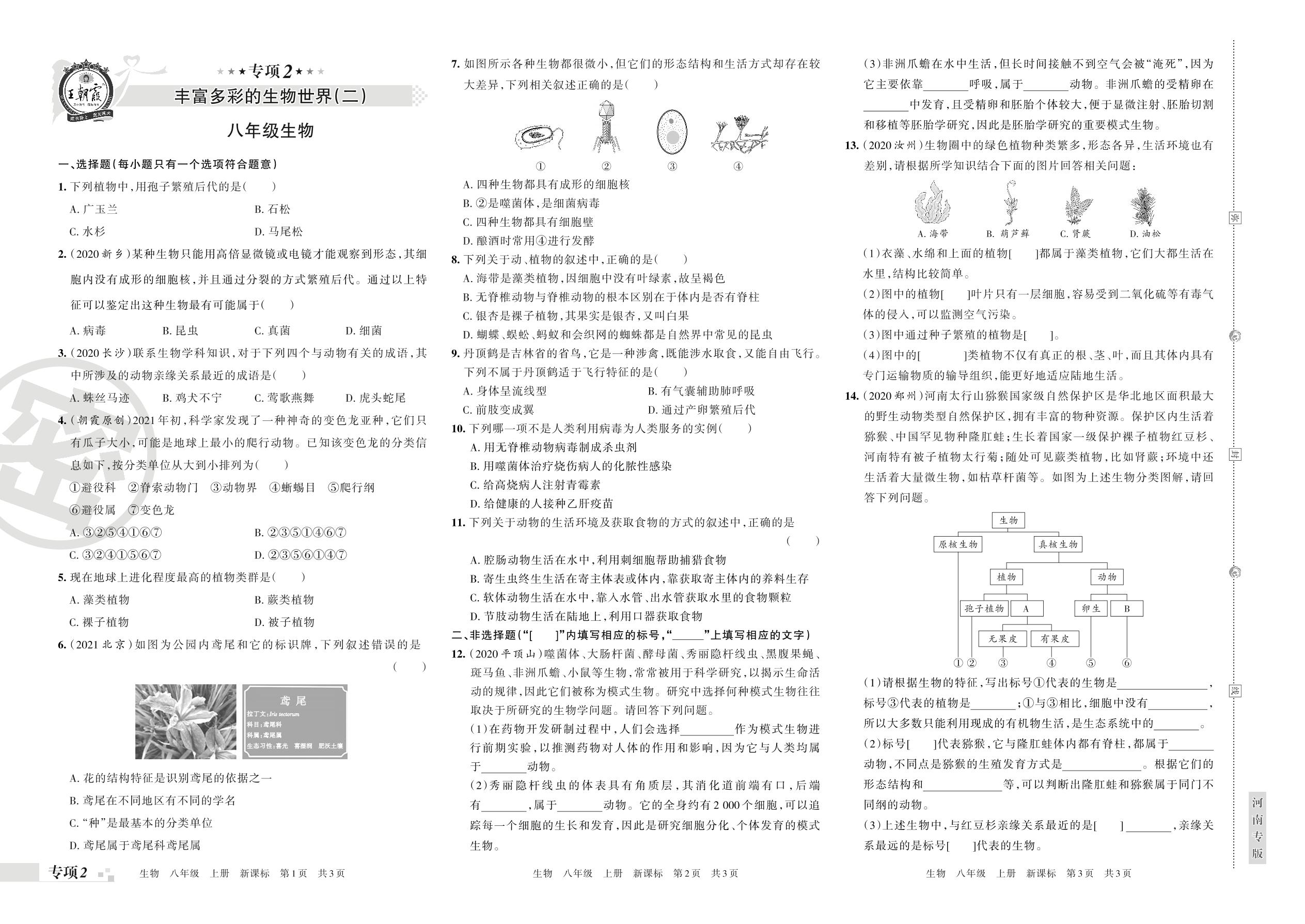 王朝霞期末专项卷——丰富多彩的生物世界(二)八年级上册生物(新课标版)【2】