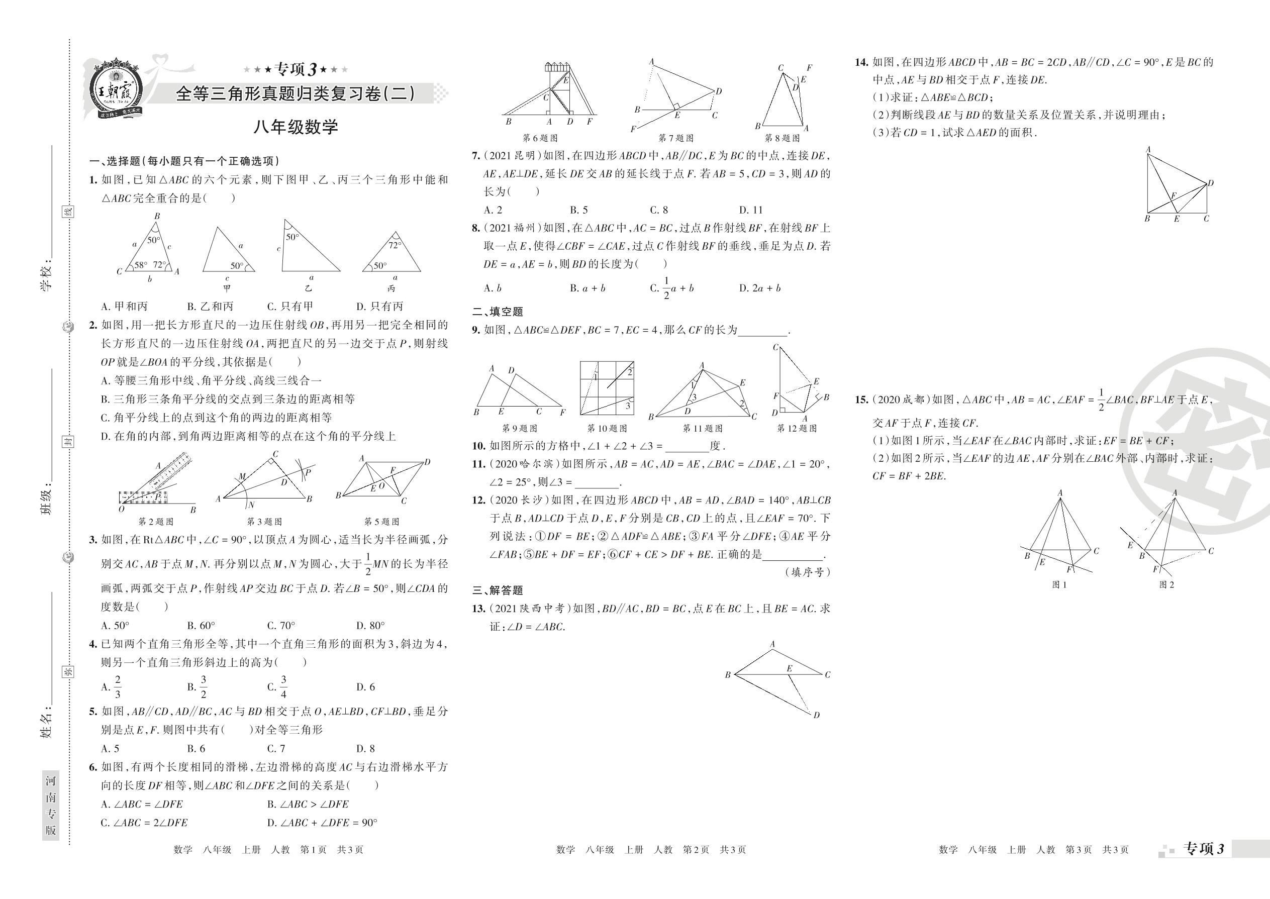 王朝霞期末专项卷——全等三角形真题归类复习卷(二)八年级上册数学(人教版)_R211206111117966【3】