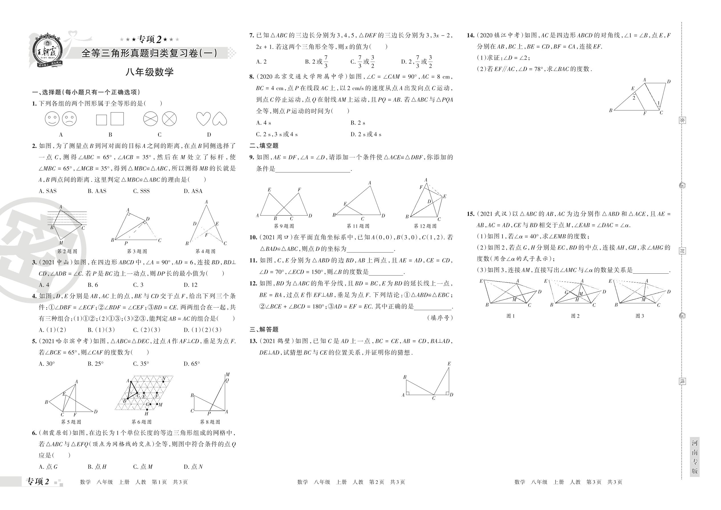 王朝霞期末专项卷——全等三角形真题归类复习卷(一)八年级上册数学(人教版)_R211206111117862【2】