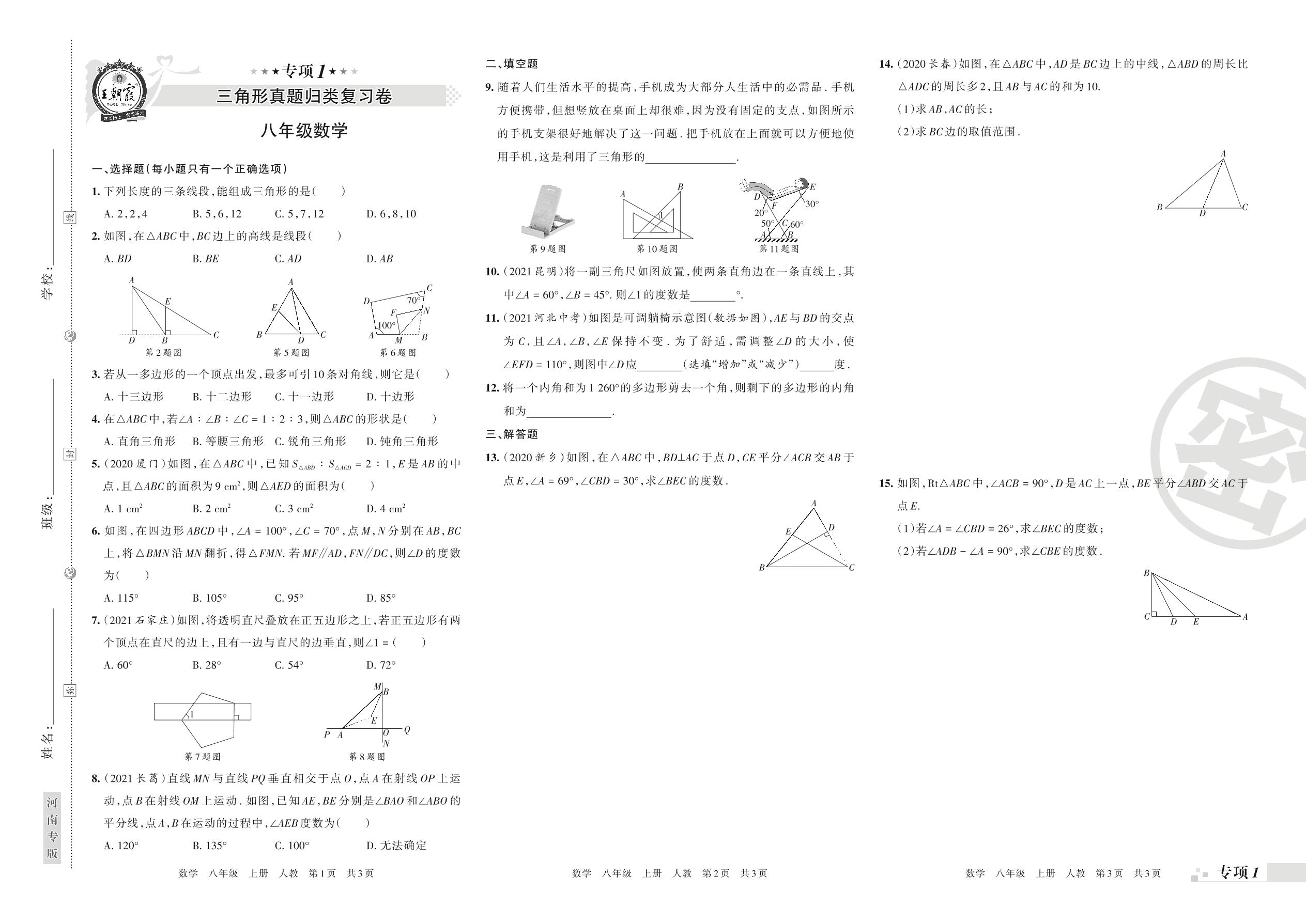 王朝霞期末专项卷——三角形真题归类复习卷八年级上册数学(人教版)_R211206111117948【1】