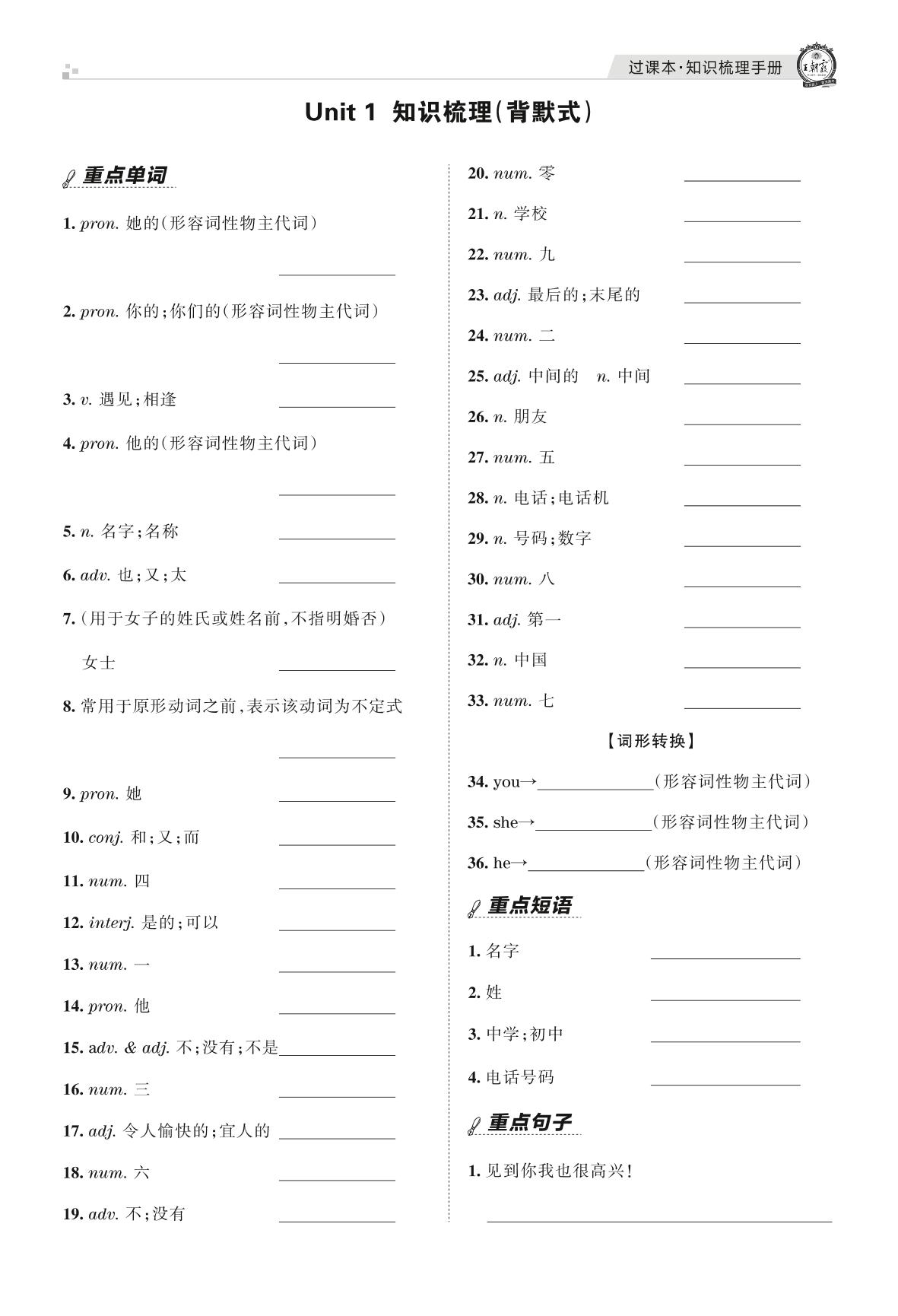 王朝霞期末过课本——Unit 1 知识梳理(背默式)七年级上册英语(人教版)_R211206111634204【2】