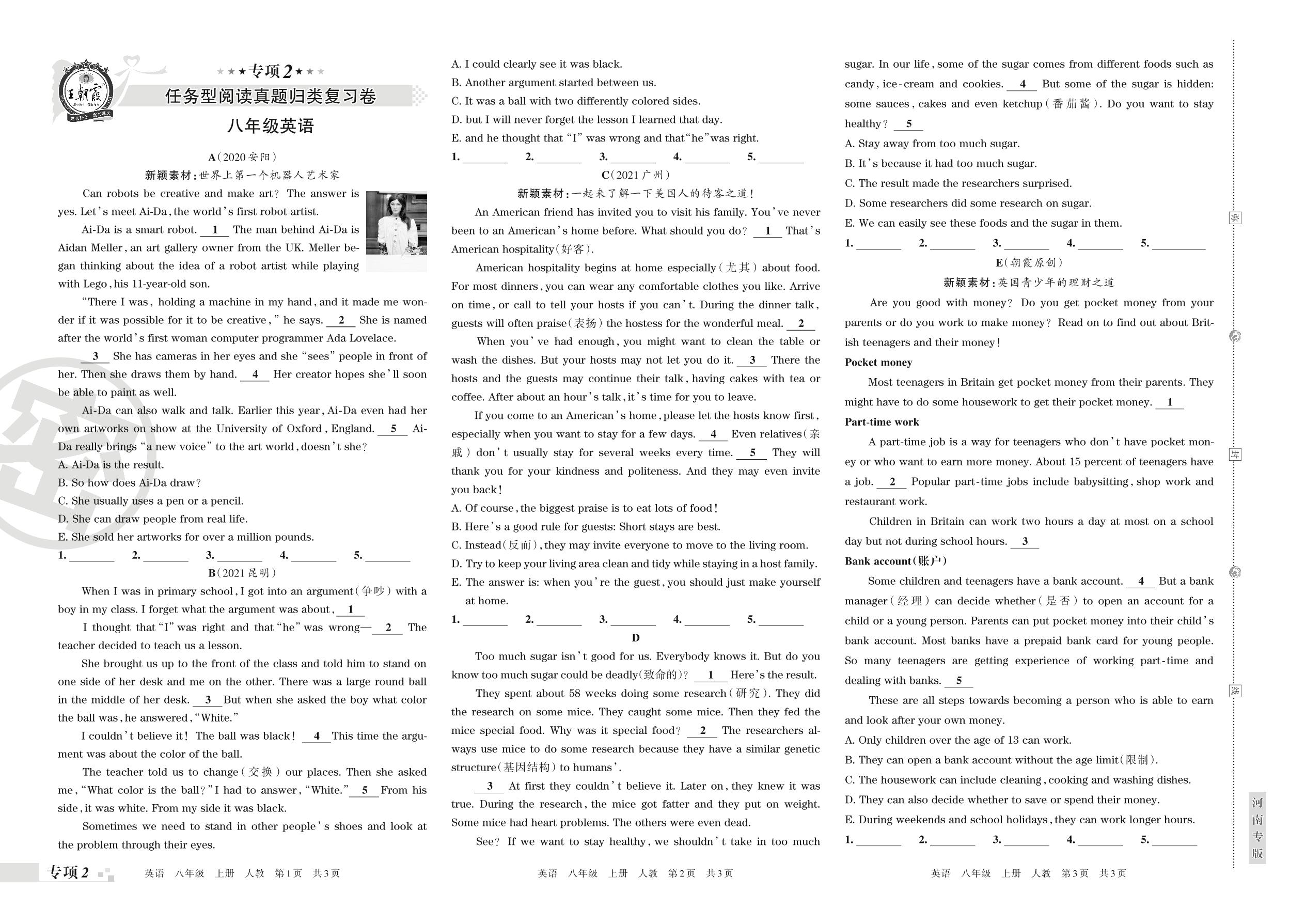 王朝霞期末专项卷——任务型阅读真题归类复习卷八年级上册英语(人教版)_R211206112117742【2】