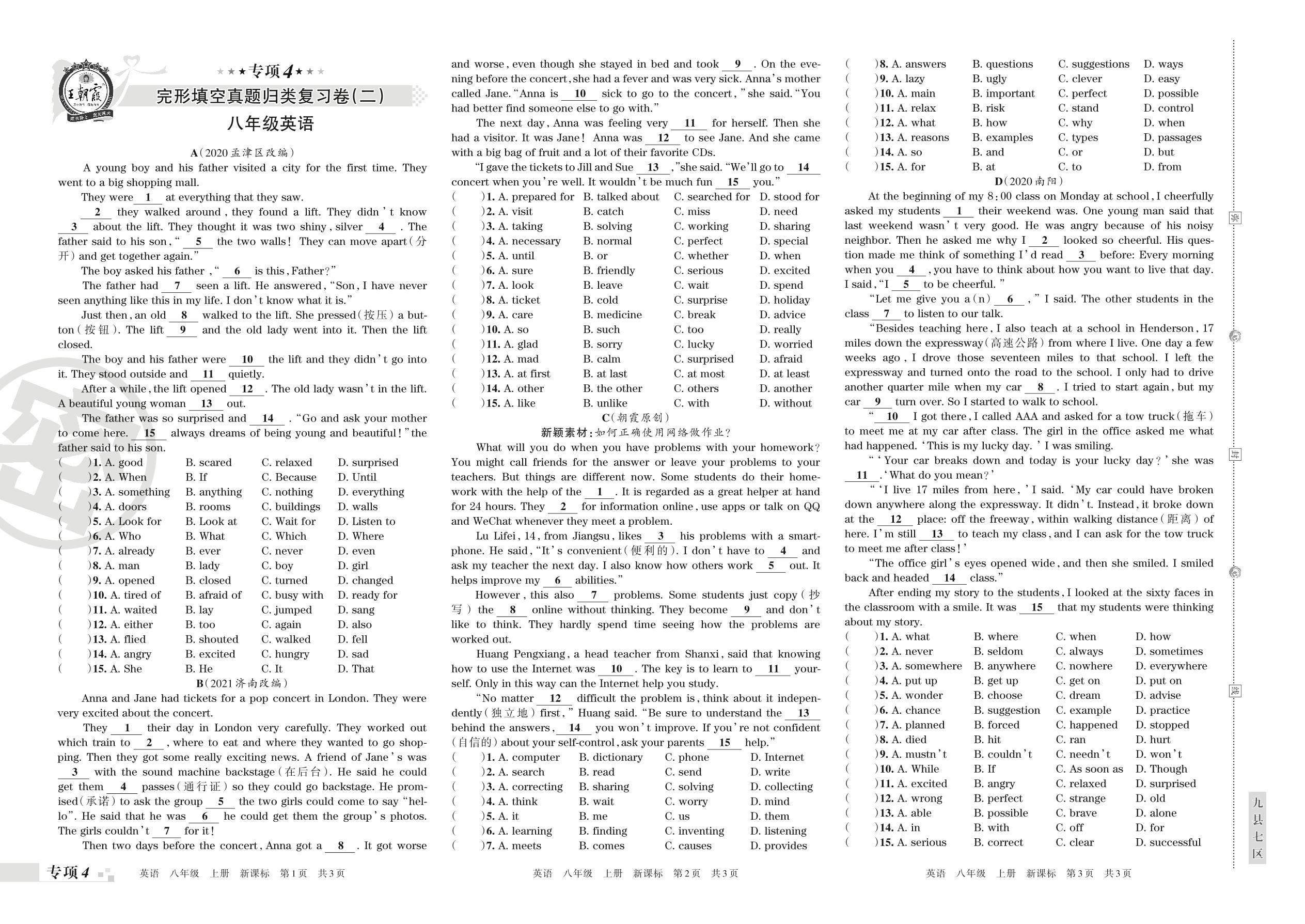 王朝霞期末专项卷——完形填空真题归类复习卷(二)八年级上册英语(新课标版)_R211207092818968【4】