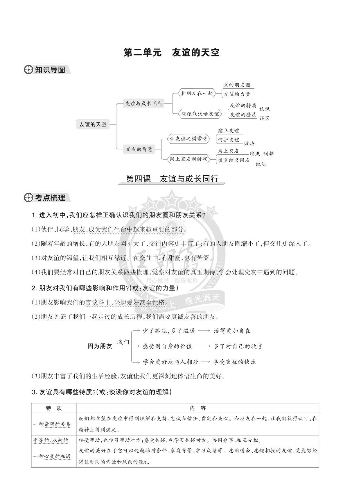 王朝霞期末知识梳理——第二单元 友谊的天空七年级上册道德与法治(人教版)_R211207094638741【2】
