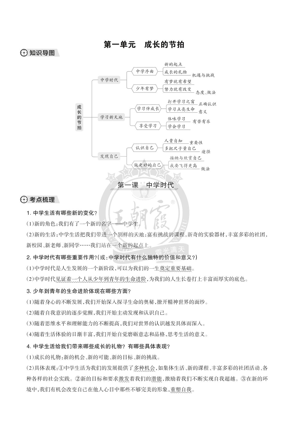 王朝霞期末知识梳理——第一单元 成长的节拍七年级上册道德与法治(人教版)_R211207094638619【1】