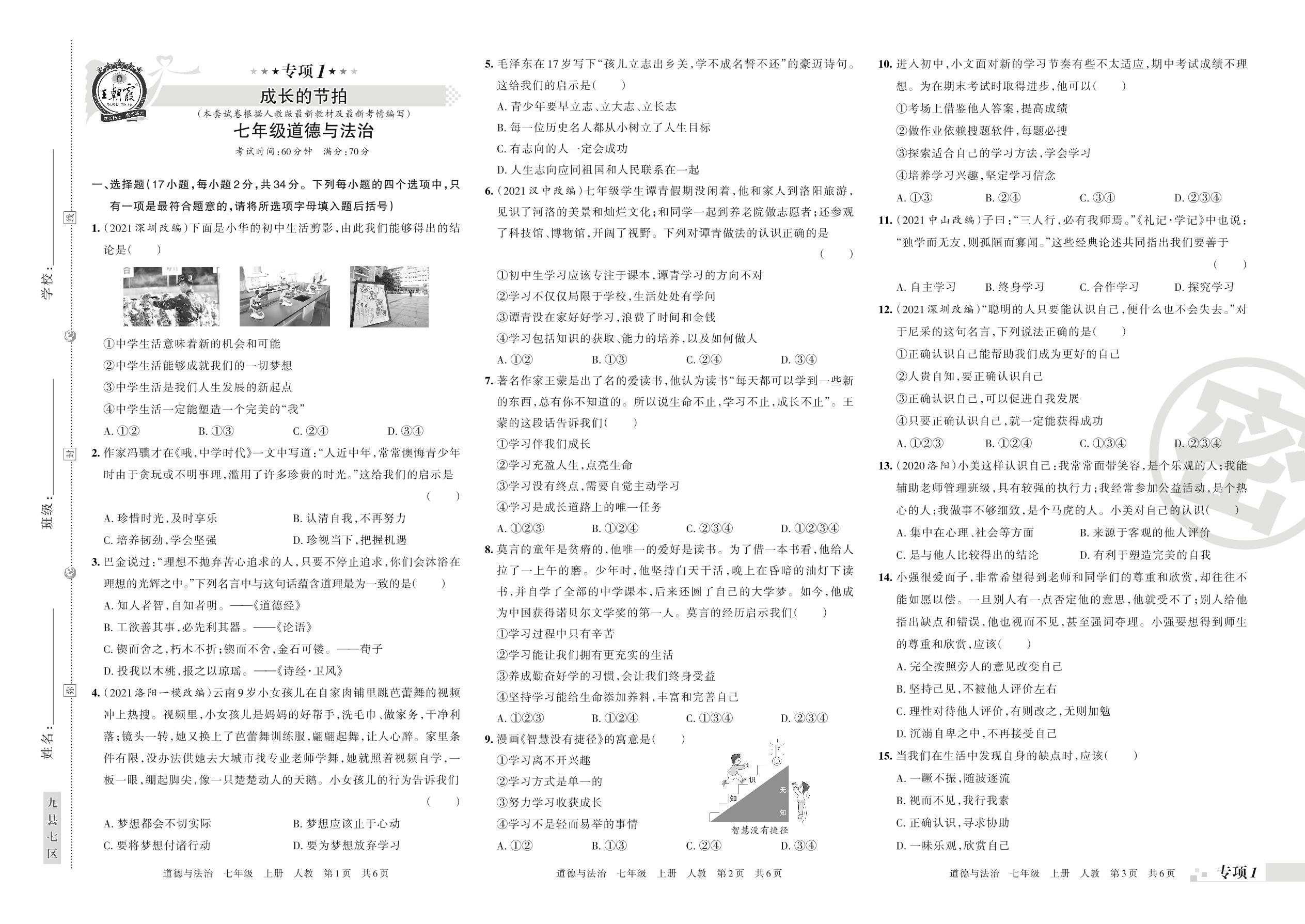 王朝霞期末专项卷——成长的节拍七年级上册道德与法治(人教版)_R211207094639283【1】