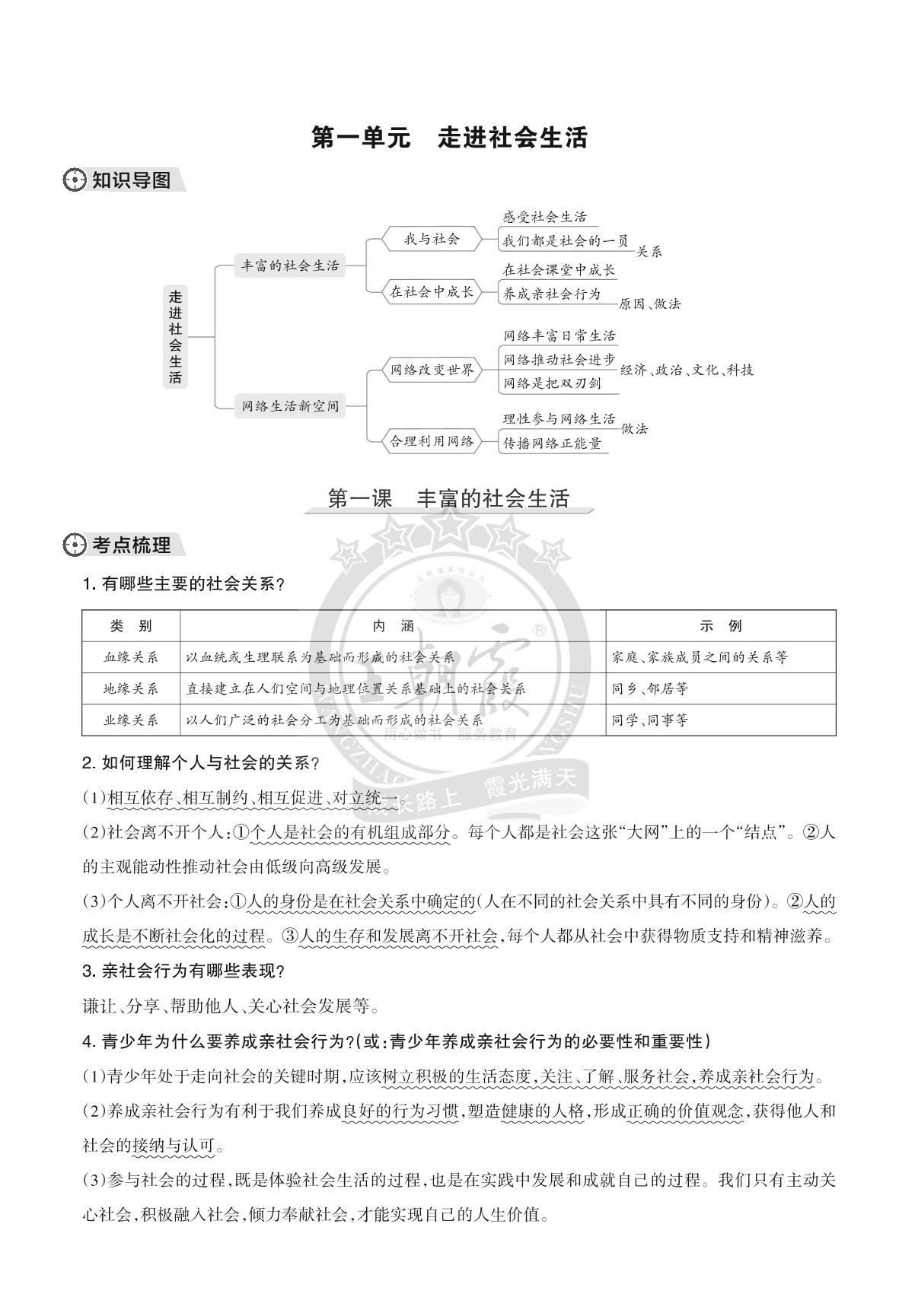 王朝霞期末知识梳理——第一单元 走进社会生活八年级上册道德与法治(人教版)_R211207094915563【1】