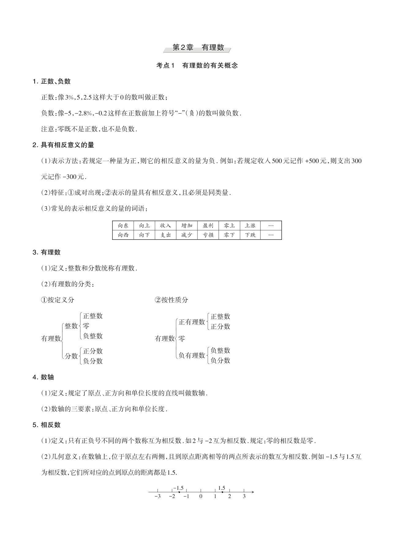 王朝霞期末知识梳理——第2章 有理数七年级上册数学(华师版)【1】