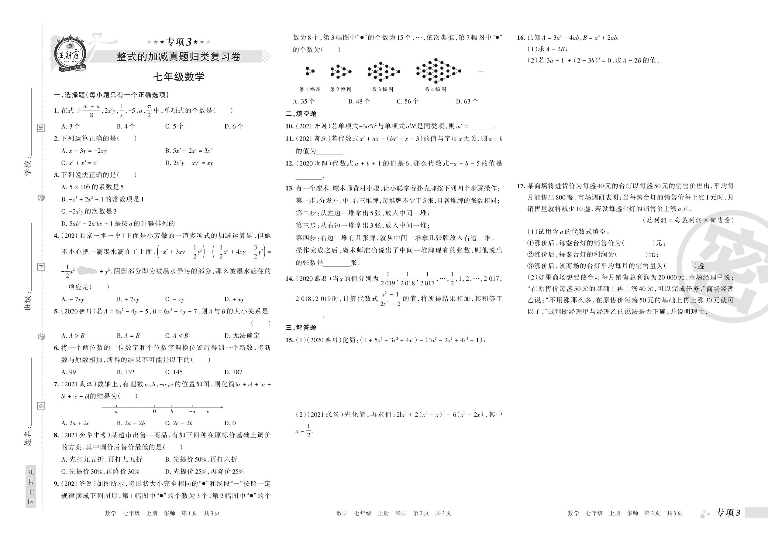 王朝霞期末专项卷——整式的加减真题归类复习卷七年级上册数学(华师版)_R211207095513249【3】