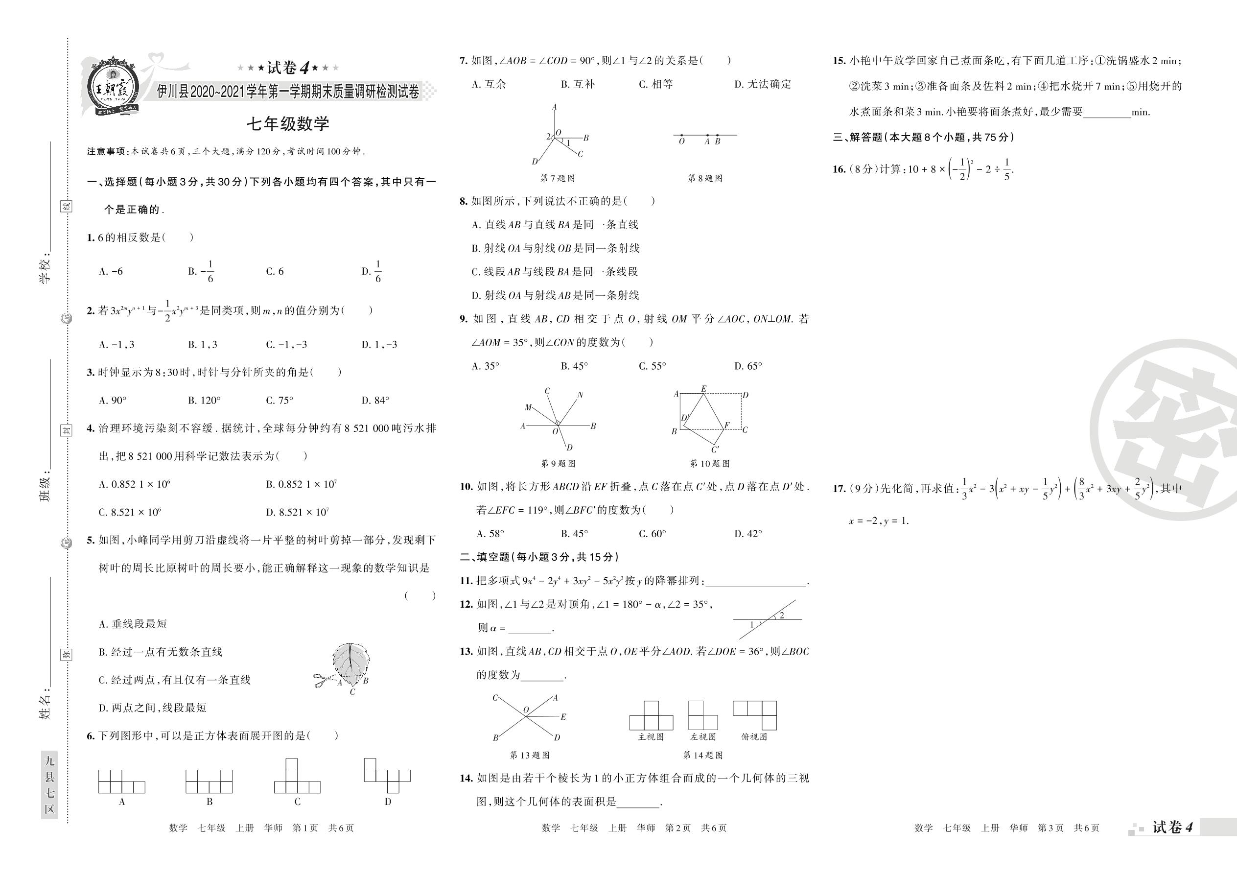 七年级数学华师版上册期末卷