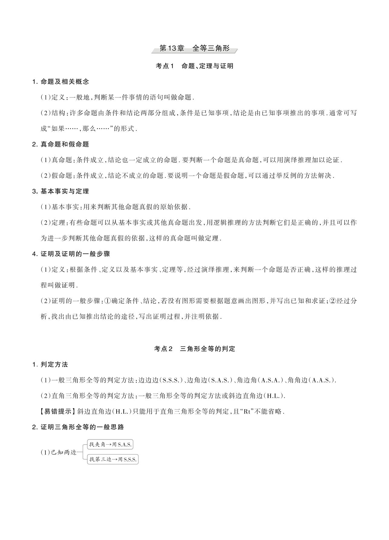 王朝霞期末知识梳理——第13章 全等三角形八年级上册数学(华师版)【3】