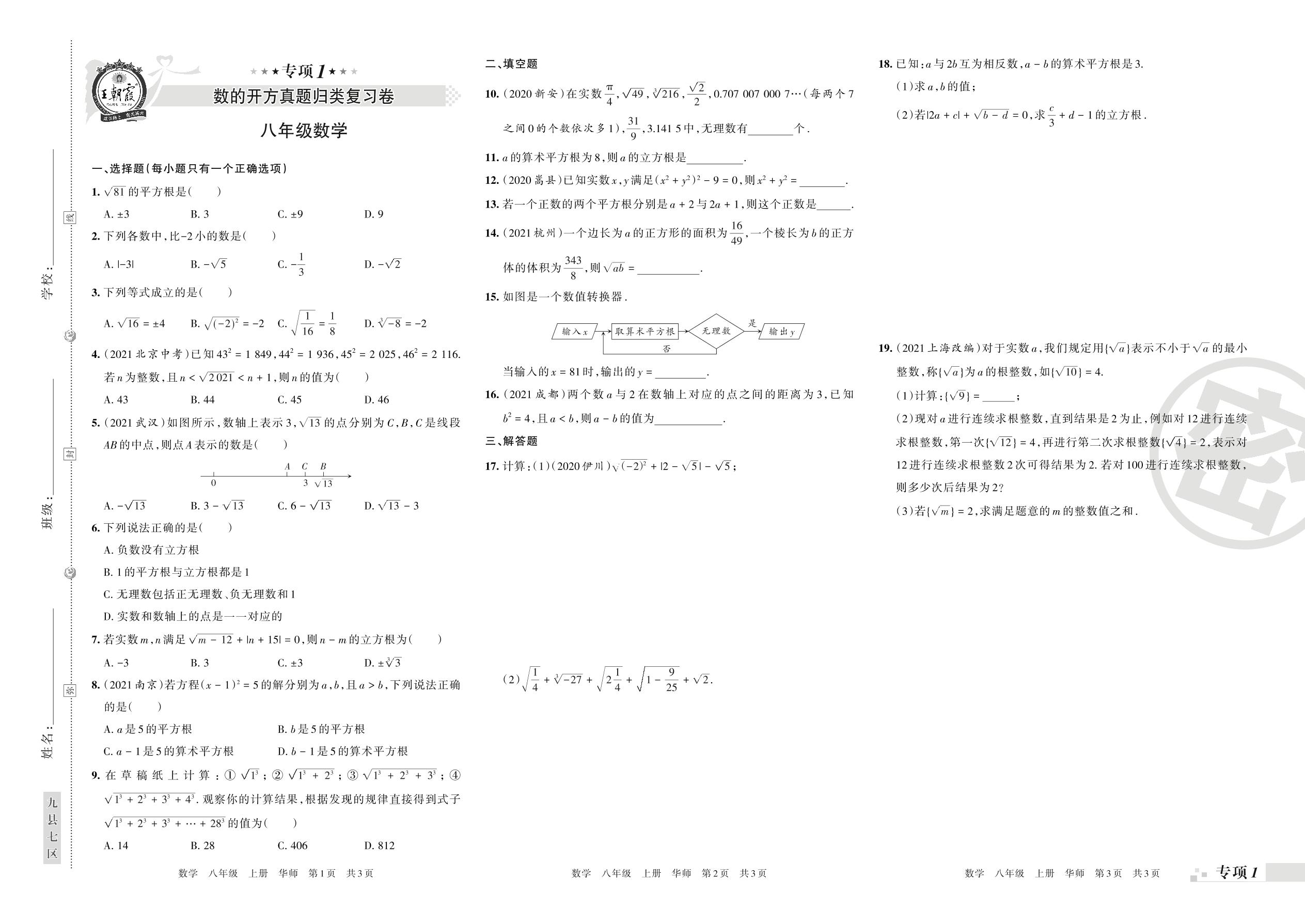 王朝霞期末专项卷——数的开方真题归类复习卷八年级上册数学(华师版)_R211207095855545【1】